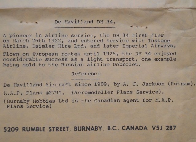 Английский легкий транспортный самолет De Havilland D.H. 34 был создан в 1922 году. Строился cерийно. Один аэроплан продали советской авиакомпании "Добролет". Подробнее о D.H. 34 можно прочитать тут.
