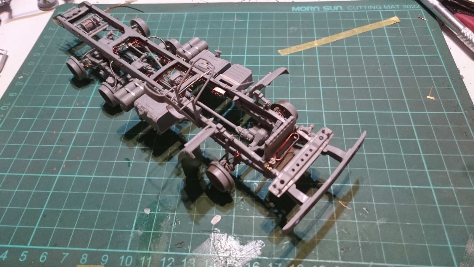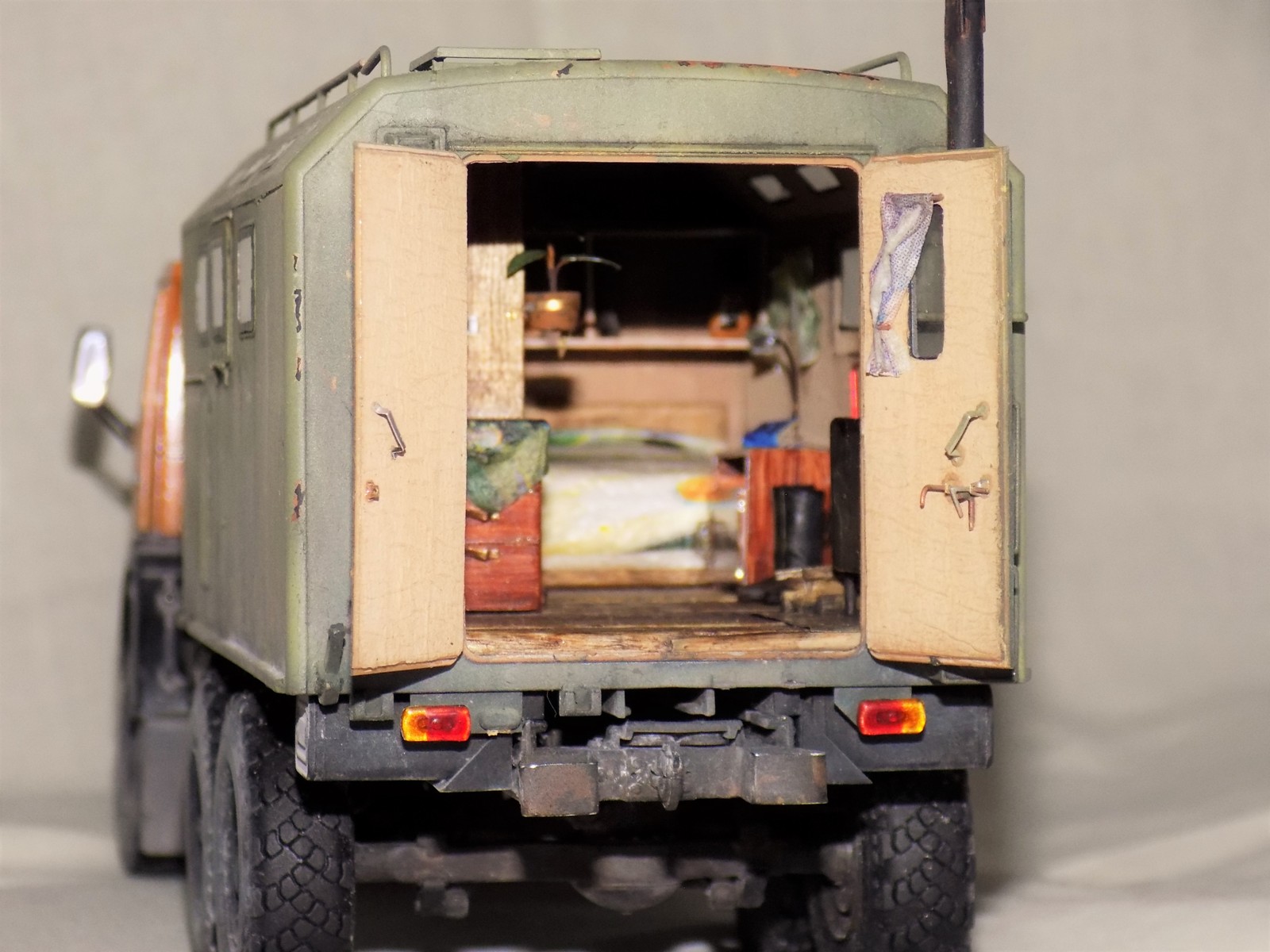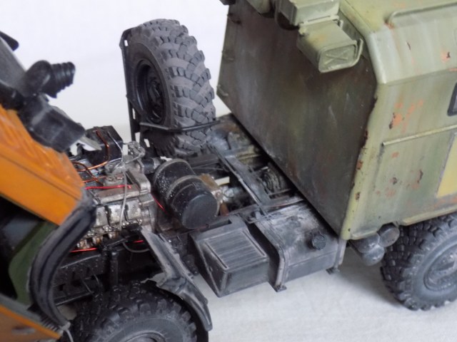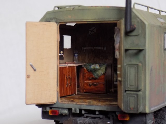 - Подручные средства для больше детализации ходовой, двигателя (в основном проволока, остатки травления и паяльник, а так же интерьер кунга выполненный с нуля.