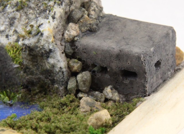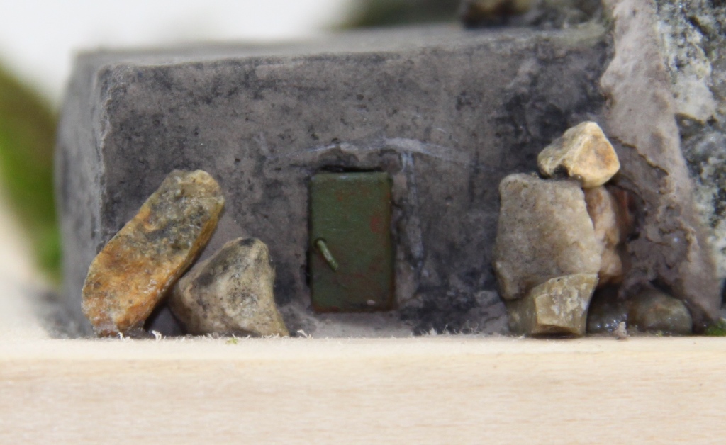 Вражеское орудие - самопал из литника. Дверь в бункер - кусочек пластиковой детальки от чего-то, ручка двери из тонкой скрепки.