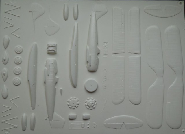 Вакуумформованная модель от фирмы Esoteric Models упакована в полиэтиленовый пакет. Масштаб 1/72 (номер по каталогу NAF-11). Основные детали отформованы на одном листе пластика с весьма неплохой проработкой. В наборе присутствуют деталировка из белого металла и профили из пластика. Козырьки кабины предполагается изготовить самостоятельно. В модель заложена возможность сделать на выбор одну из пяти модификаций самолёта. Декаль на восемь вариантов. Отдельно прикладывается декаль с ремнями и приборной доской. Информация по сборке дана на «удовлетворительно».
