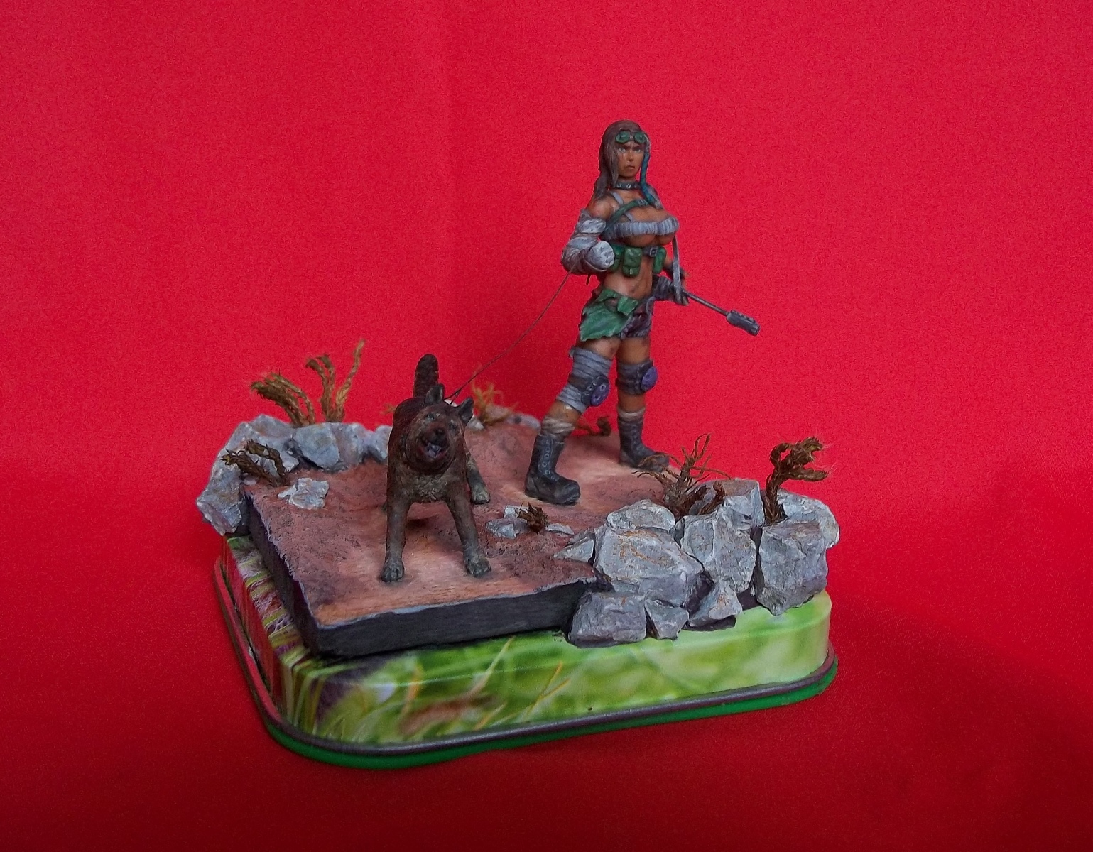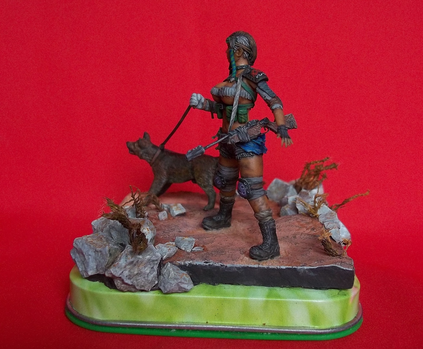 Помню , мы как то с коллегами взяли два литра гуаши ...))) Хороша бандитка ! Очень хороша !!! Самодельная калиберная винтовка тож понравилась Правда пёс больше на дворянина похож чем на рейдерского пса ) и камушки можно разными оттенками для оживляжу. Но то так ... мелочи ) Отличная работа! и кстати крышки с чайных банок не намного лучше пробок) сними сейчас же.