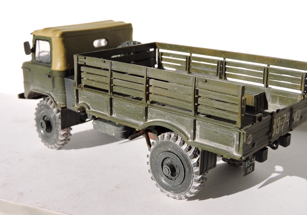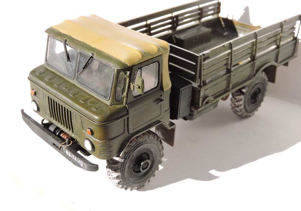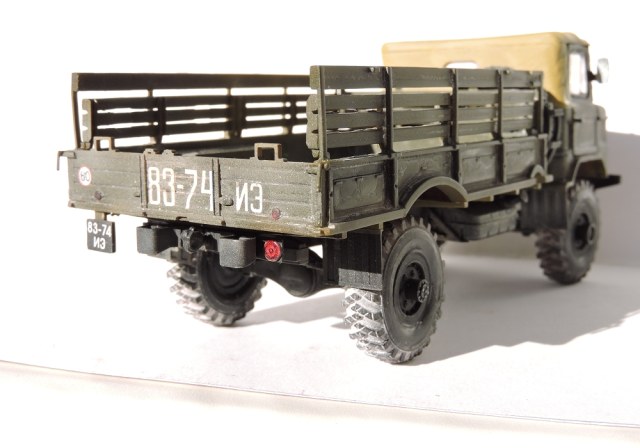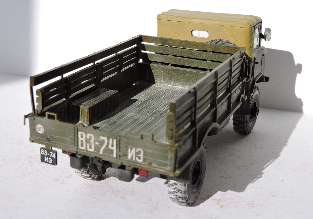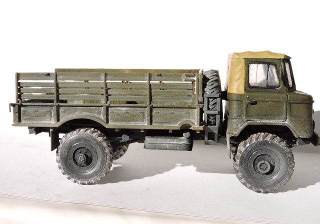 Я бы покрасил песочным цветом-детство провёл в пустыне,там были такие варианты в геолого-разведке.Модель классная!