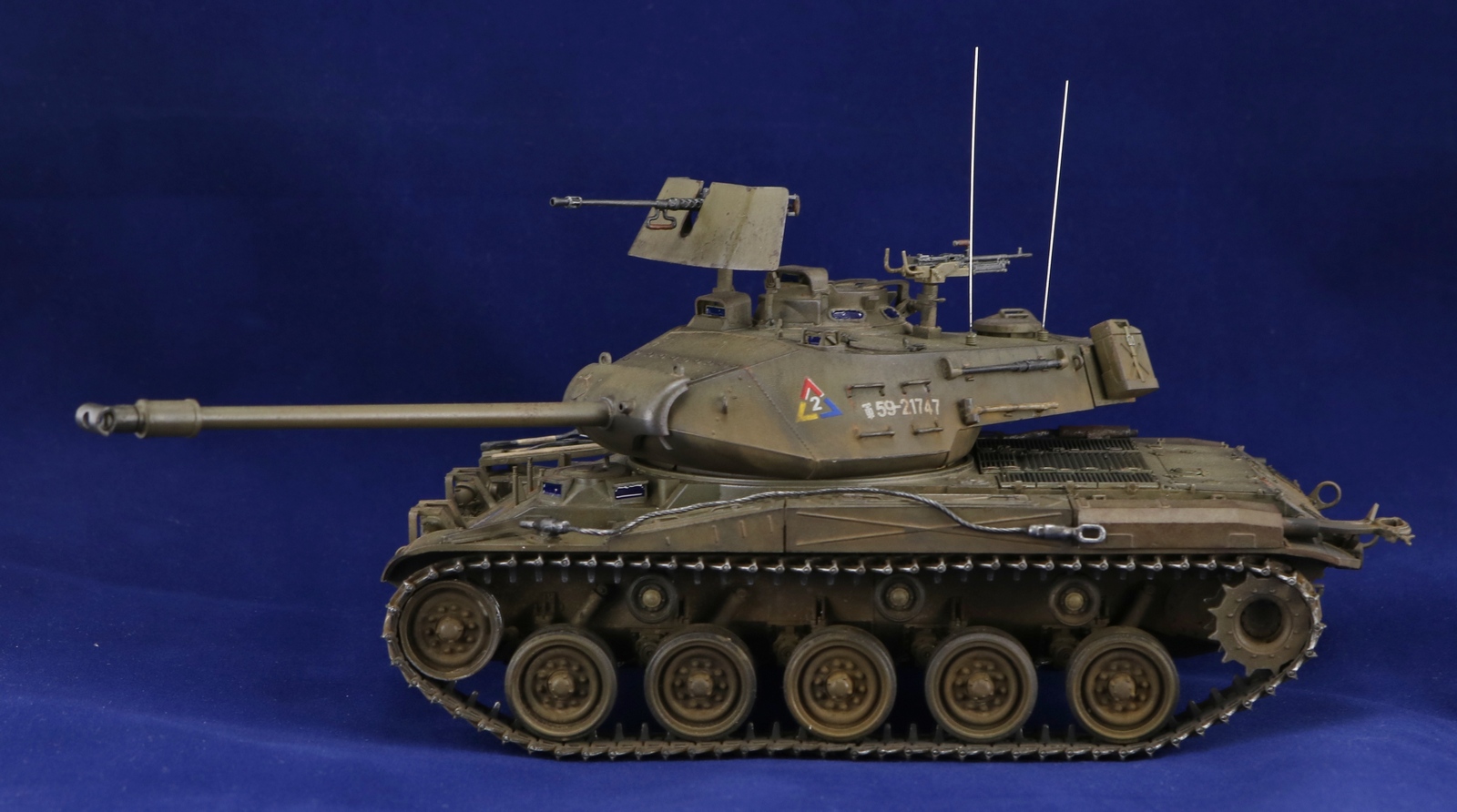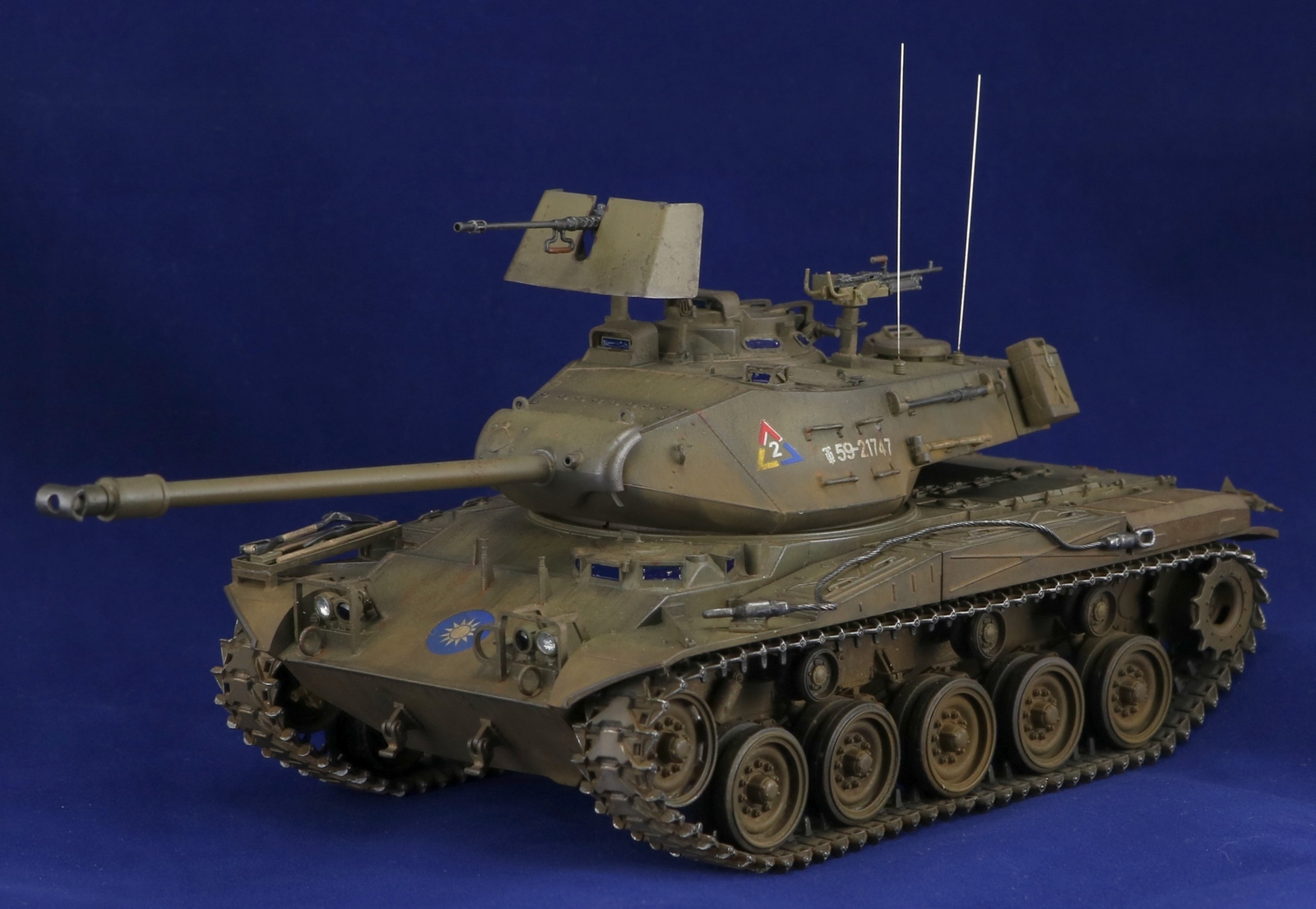 Здравствуйте. Хочу представить на суд модель легкого танка от AFV club M41 Walker Bulldog. Модель понравилась, стыкуемость хорошая. Попалось пару мест где долго прикидывал как клеить, но скорее всего из-за малого опыта. Собирал из коробки, только добавил трос и антенны из гитарной струны. Красил, тонировал и пылил AK Interactive и Tamiya. Собрал еще зимой. А не фоткал т.к. на ватмане не получалось, поэтому решил приобрести лайткуб. Фоткал в лайткубе и в ручном режиме первый раз. Поэтому прошу совета по фотографиям, что не так, как исправить и какие нужны настройки на фотоаппарате.
