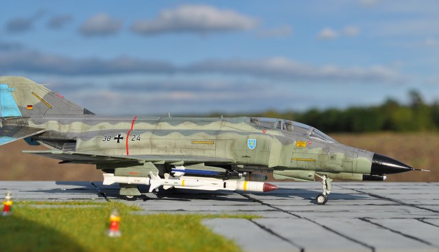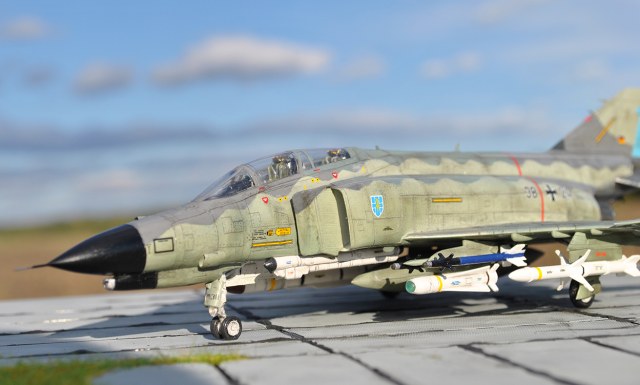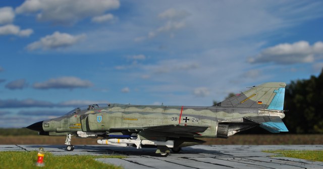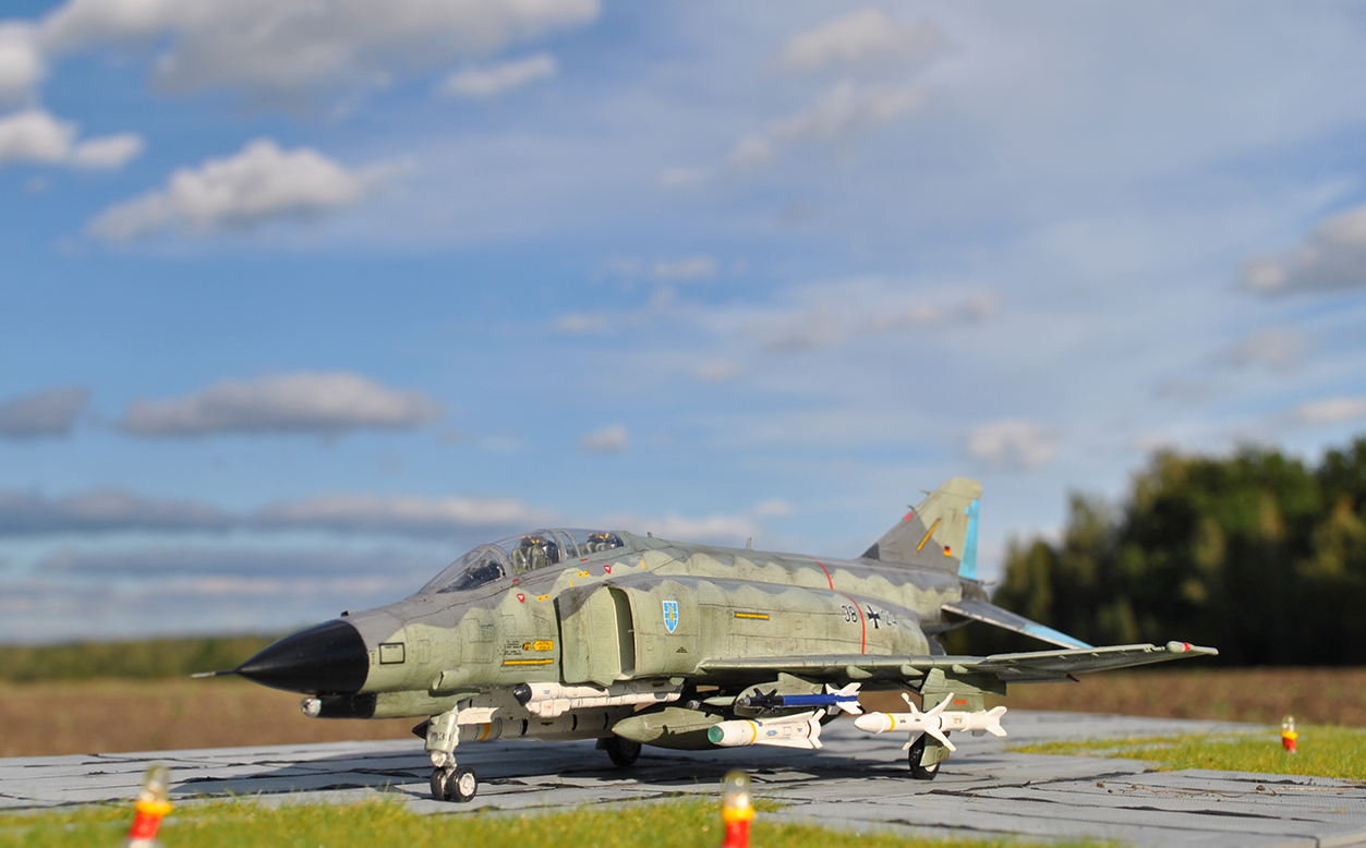 Имелась ввиду база за пределами Германии, бывший советский аэродром, на котором два раза по полгода немецкие Ф-4 несли дежурство(в 2005-м и 2008-м гг.) - часть её смотрелась именно так как покрытие на фото данной работы. Только вариант вооружения Ф-4 был УР ВВ.
