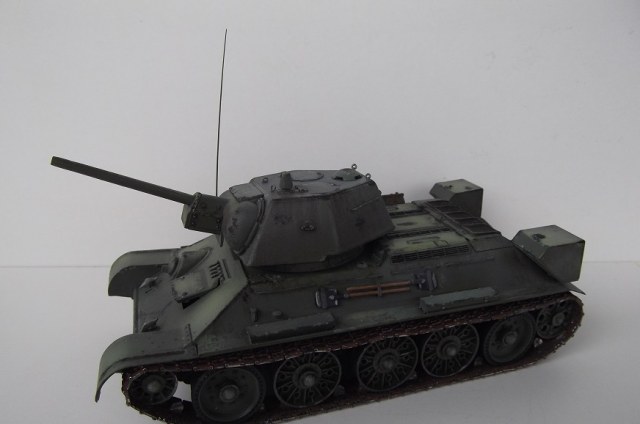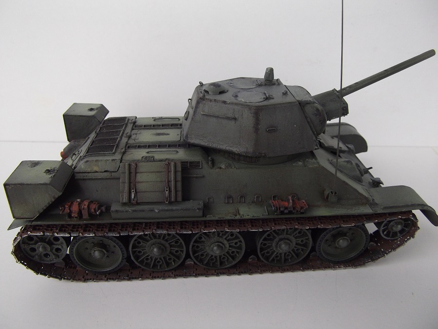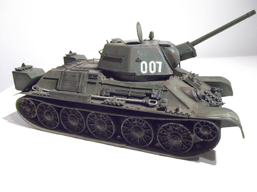 Хочу представить модель танка Т- 34(76). Это была моя первая модель и собрана типично для новичков . Последние фото как раз иллюстрация того как не надо. Принципиально выбрасывать не хотел, хотя проще было это сделать. Мат.часть у этого танка особенно сложна и интересна. Конечно изрядно помучился и стройка затянулась на пол года. В дополнение прикупил комлект травления от едуарда, катки от клаб мастера, траки фриул. В итоге получилось то ,что представляю. Итак по корпусу :