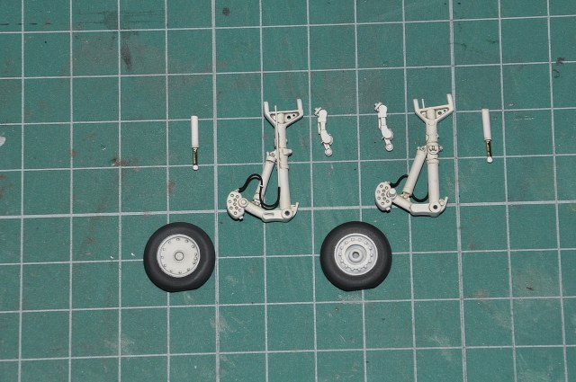 Стоки шасси подверглись небольшим доработкам. Изготовил из проволоки петли для фиксации самолета на полетной палубе авианосца и шланги гидравлики на основных стойках.