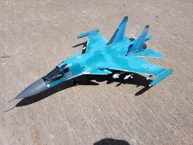 Повторная перезаливка фотографий. Хотел сделать 34 б/н 03, он единственный был в САР камуфлированный, остальные серые. Много мелких самодельных дополнений. Хотел купить Хибины в наборе допов, но увидел цену и "зеленая" задушила. Короче все делал сам из остатков старых моделей. Добавил хибины, лестницу на передную стойку шасси, бомбовый прицел, немного кабину, увеличил наплывы перед ПГО, проволоку на стойки шасси добавил ну и еще несколько мелочей. Мучила меня 34-ка 5 месяцев. Накосячил с краской (в неподходящий момент тамия кончилась, докрашивал ревелом, а они не контачат вместе) кое где вздулась, несколько раз перекрашивал. Короче сильно строго не судите.....