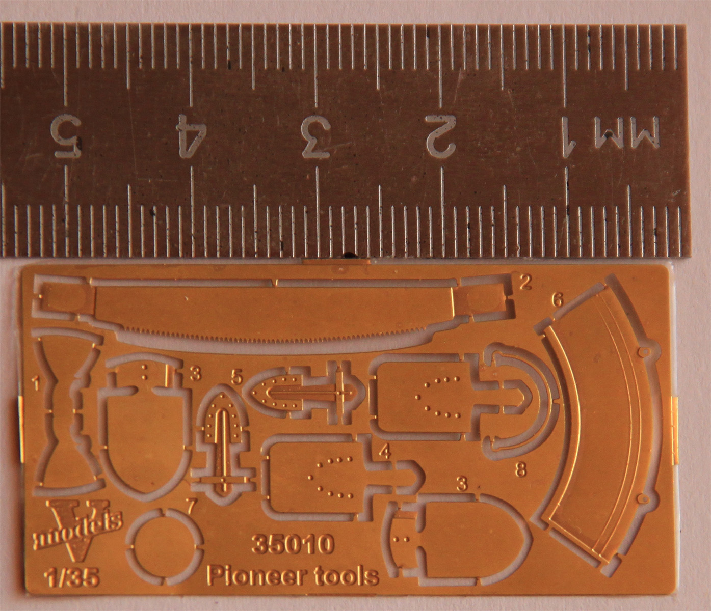 Приобрел на днях несколько плат травления малоизвестной пока украинской фирмы Vmodels - шанцевый инструмент на бронетехнику и ящик с инструментом(в оригинале слесарный инструмент).