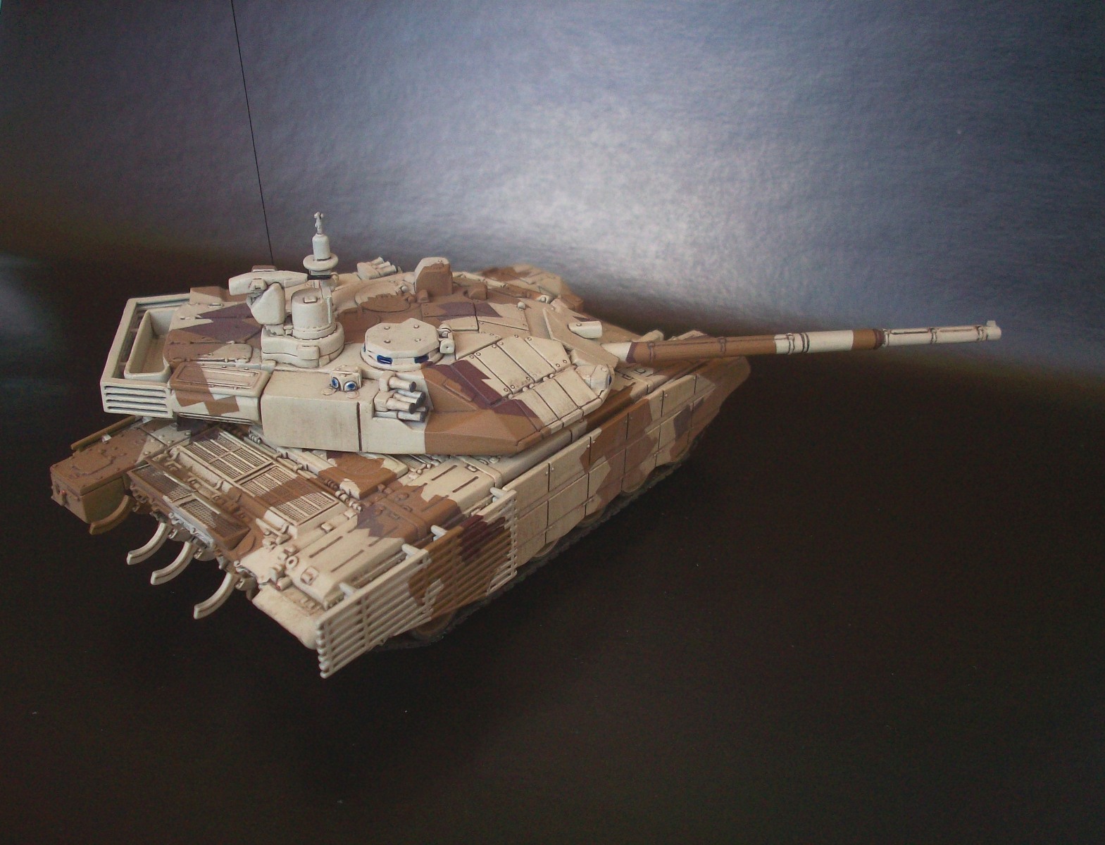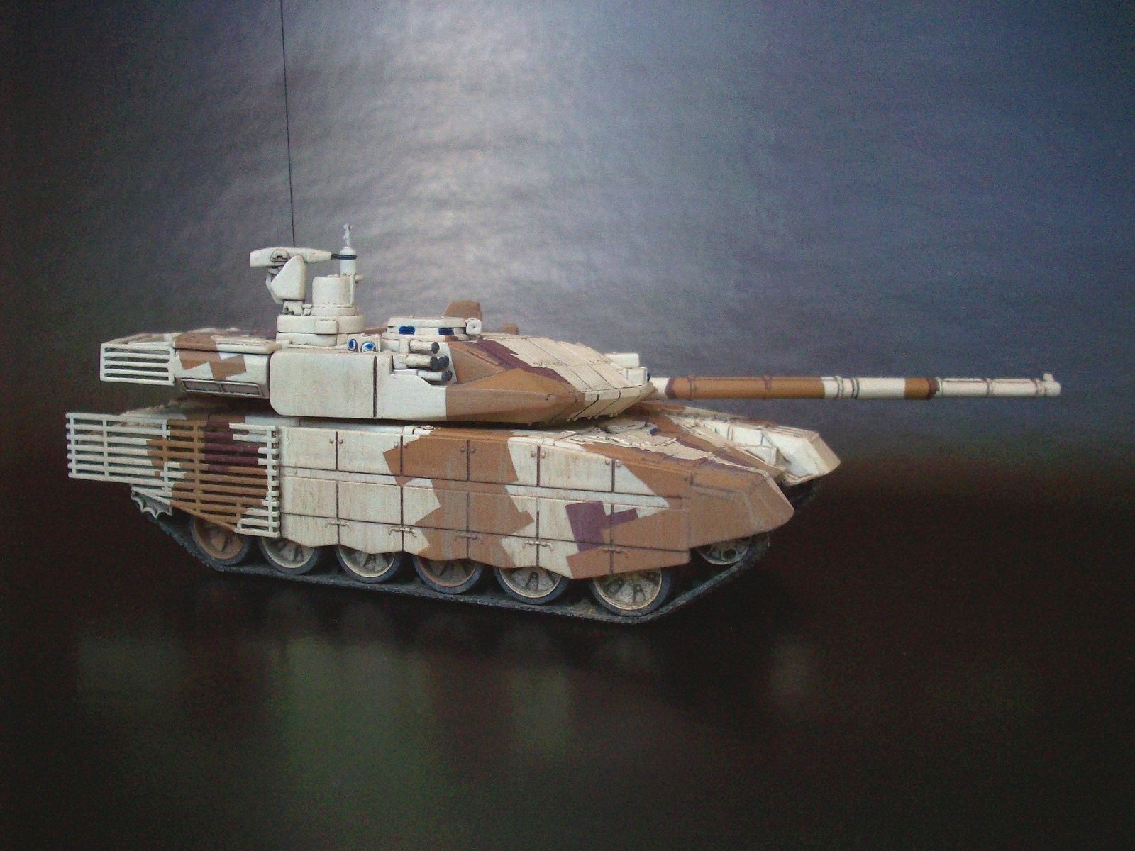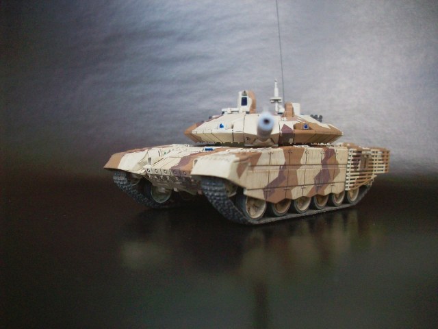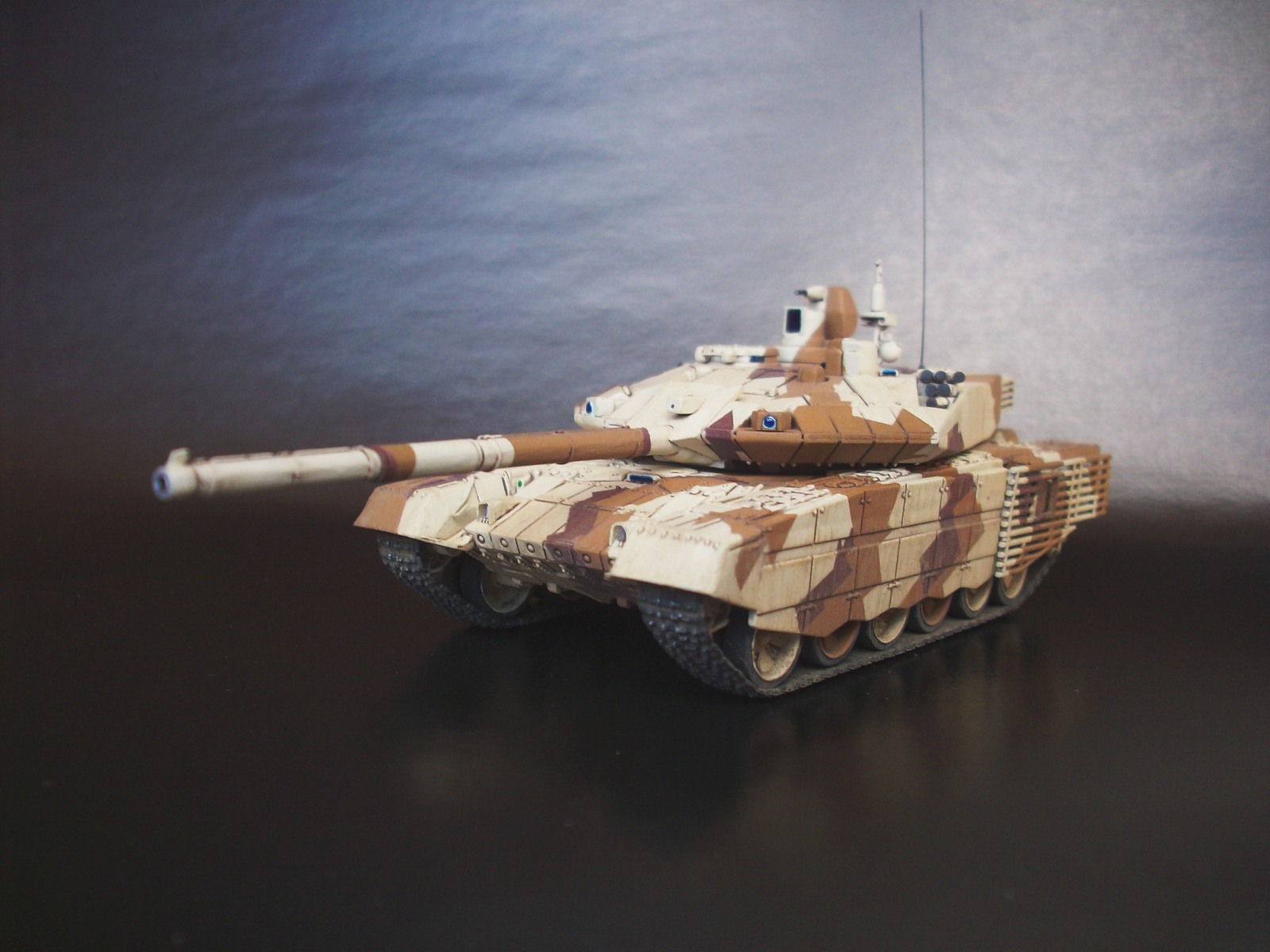 Здравствуйте, коллеги !!! Хочу презентовать крайнюю модель в коллекции - Т-90СМ от Моделколлекта. Машина сделана в выставочном оскольчатом камуфляже на Russian Army Expo 2014. Все собрано изкоробочно, добавлено только крышки на выпуске воздуха из МТО, фары, панорамный прицел, скобы на передних брызговиках, антенна. Камуфляж сделан с помощью масок из тамиевского скотча. Крашено акрилами разных фирм, припачкано пигментами"Мастер Пигмент", оптика тамиевские прозрачные лаки. На этом все. С уважением. Андрей К.