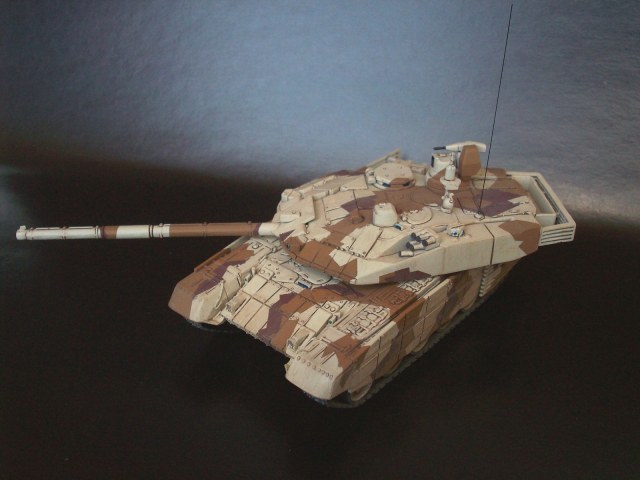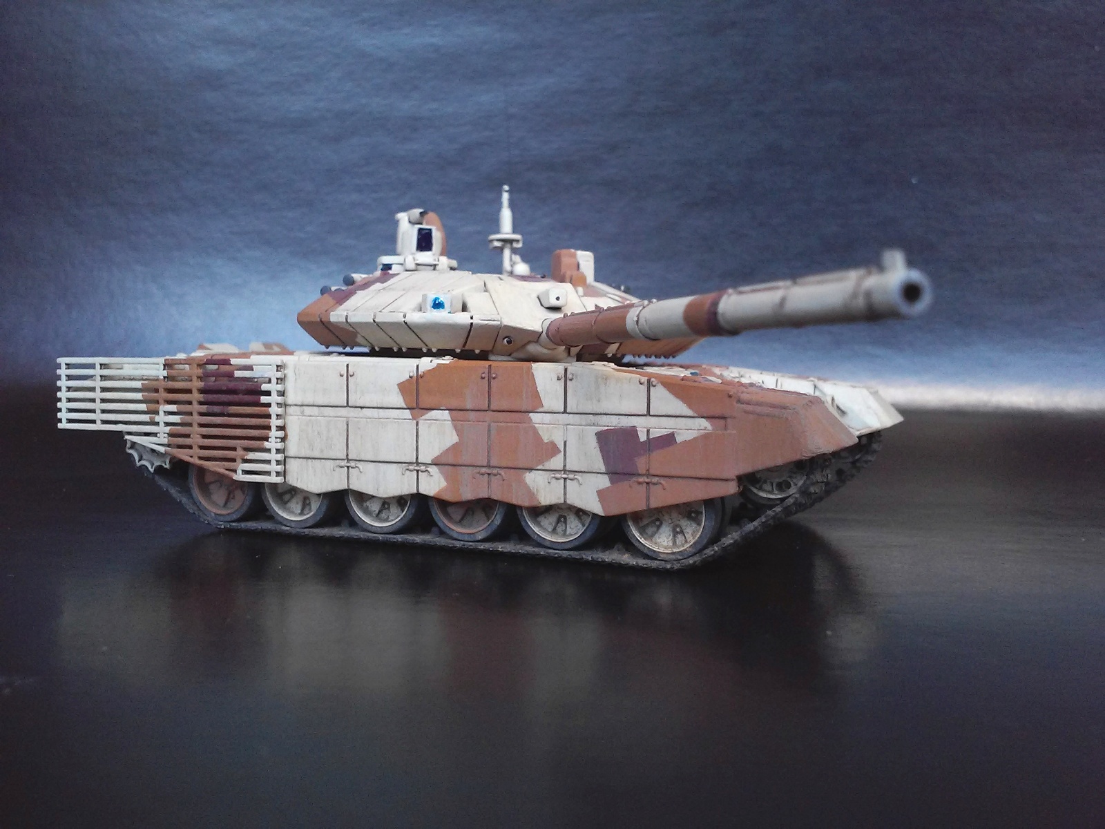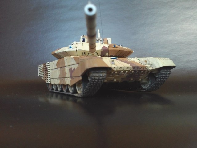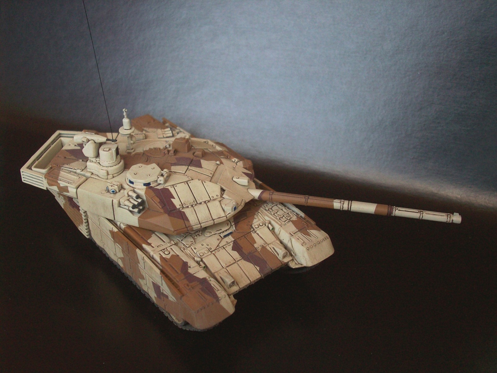Здравствуйте, коллеги !!! Хочу презентовать крайнюю модель в коллекции - Т-90СМ от Моделколлекта. Машина сделана в выставочном оскольчатом камуфляже на Russian Army Expo 2014. Все собрано изкоробочно, добавлено только крышки на выпуске воздуха из МТО, фары, панорамный прицел, скобы на передних брызговиках, антенна. Камуфляж сделан с помощью масок из тамиевского скотча. Крашено акрилами разных фирм, припачкано пигментами"Мастер Пигмент", оптика тамиевские прозрачные лаки. На этом все. С уважением. Андрей К.