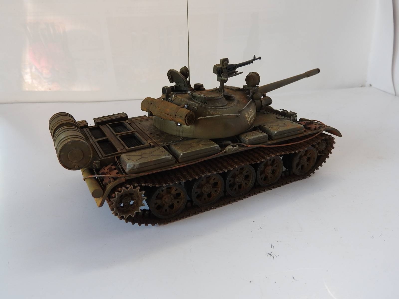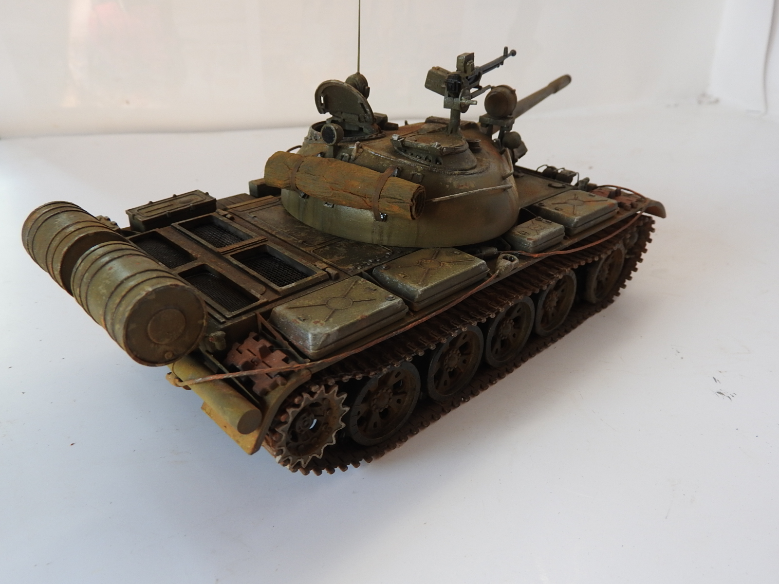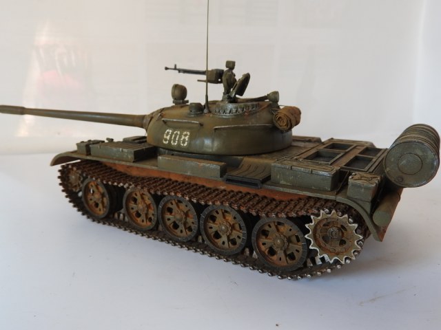 Здравствуйте! предлогаю вашему вниманию модель танка то-55 от скифа.видно модель старого производства, качество литника было ужасным.гуси тоже не подарок.вот что получилось.троса, скатка мои. с траками помучился.красил красками хемброл.сколы, царапины,потертости попробывал по методе В.Григорьева.получилось не очень но буду совершенствоваться.спасибо.