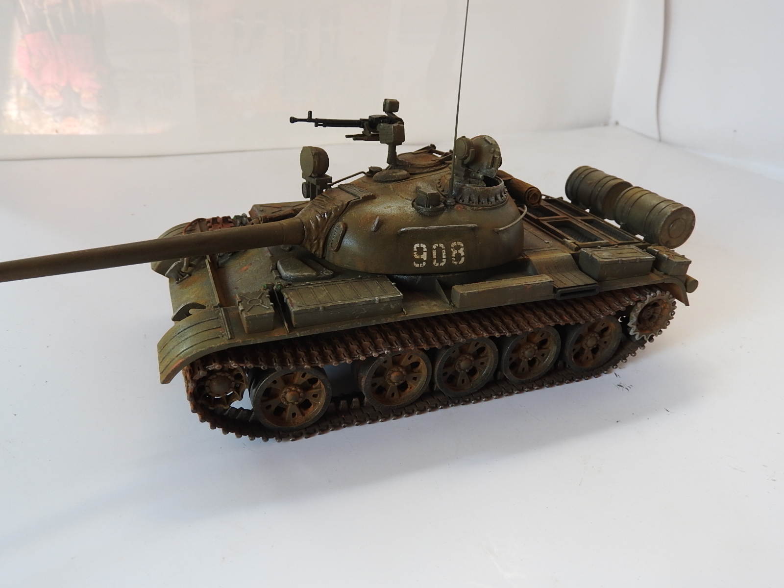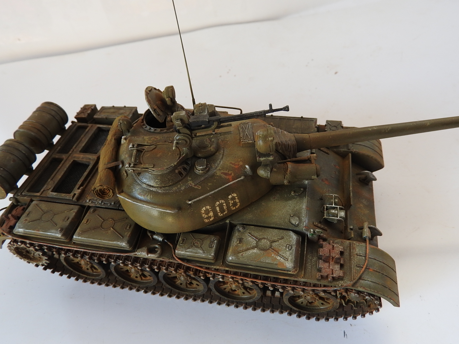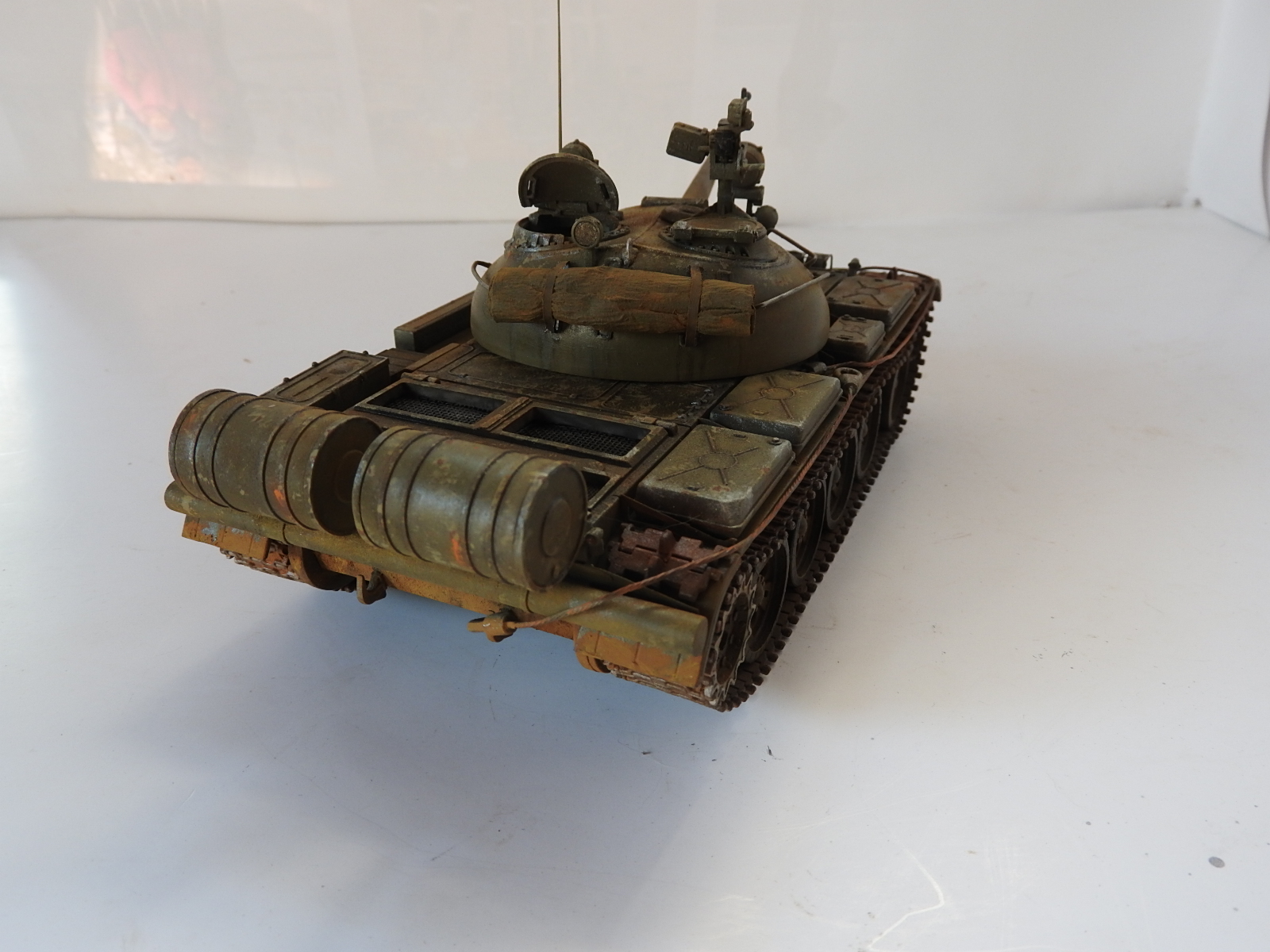 Здравствуйте! предлогаю вашему вниманию модель танка то-55 от скифа.видно модель старого производства, качество литника было ужасным.гуси тоже не подарок.вот что получилось.троса, скатка мои. с траками помучился.красил красками хемброл.сколы, царапины,потертости попробывал по методе В.Григорьева.получилось не очень но буду совершенствоваться.спасибо.