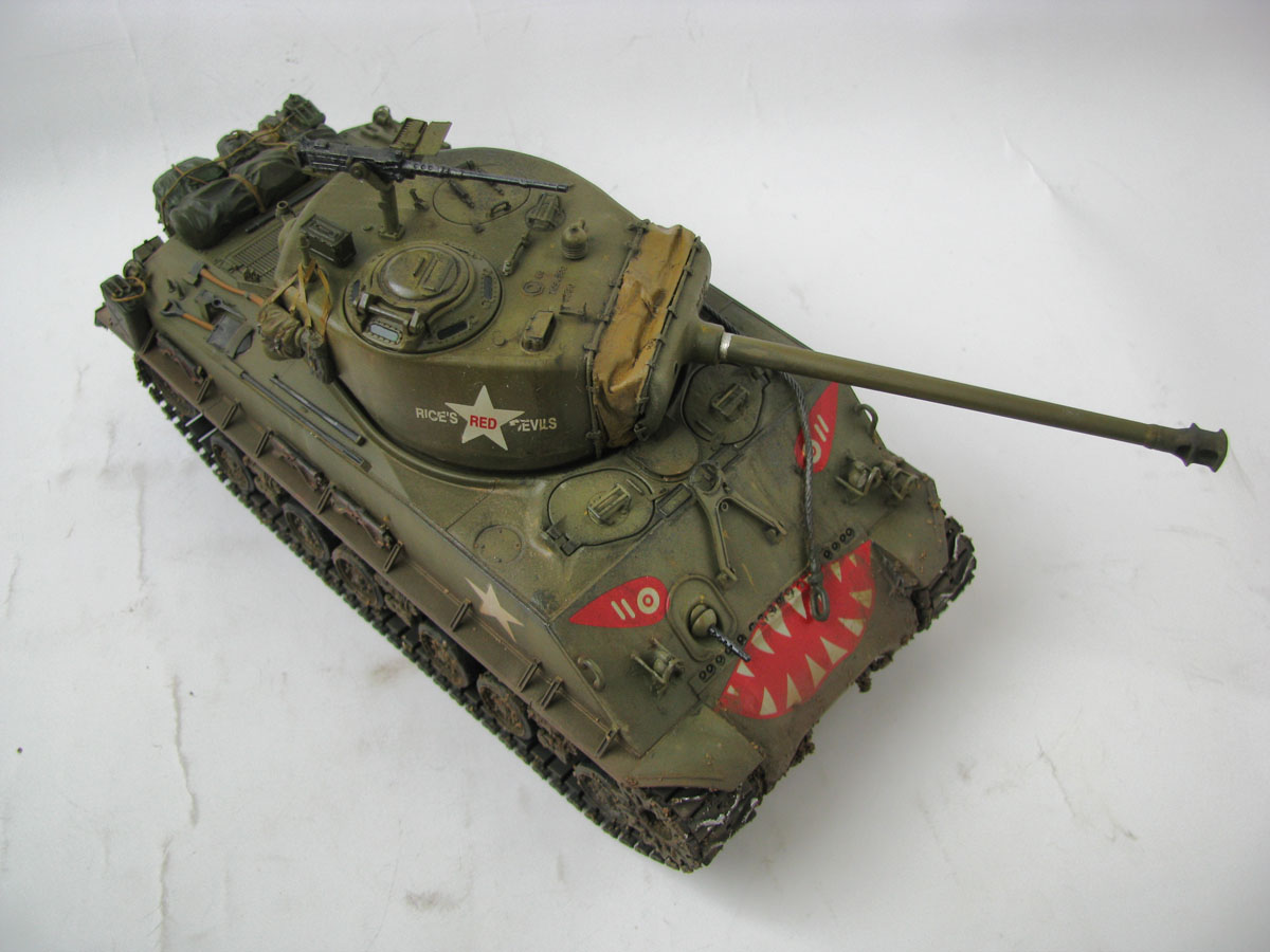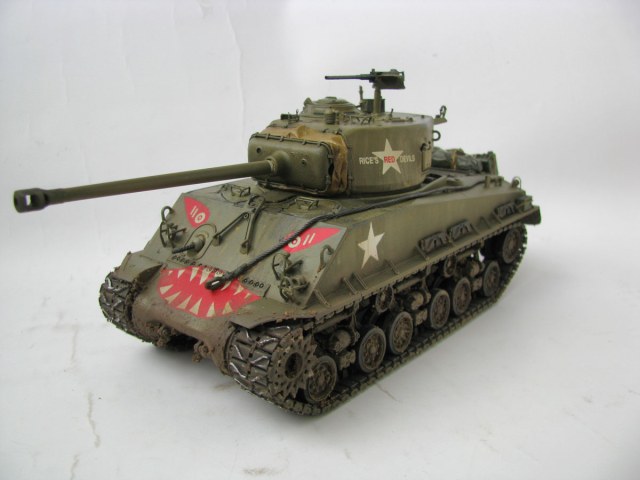Декали на 89 танковый батальон известный так же как "Красные дьяволы Рича" (по имени командира) взял из антикварного набора драгона, выпущенного аж в 1994 году. Естественно, при их переводе они начали сыпаться, так что перевести удалось не все. К счастью, машин с такой пастью было несколько, и все они отличаются расположением ОЗ и их количеством.