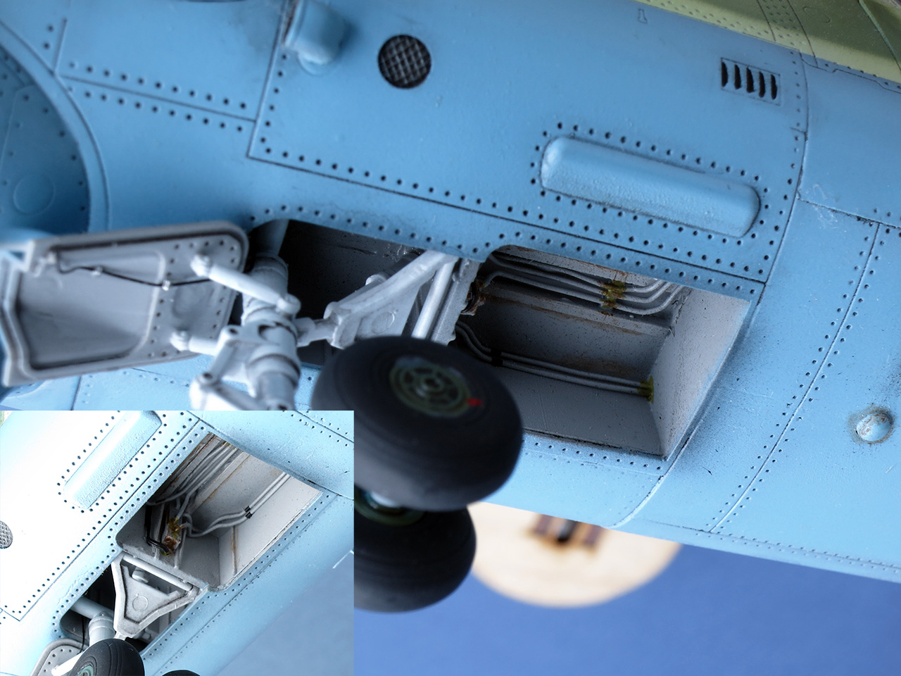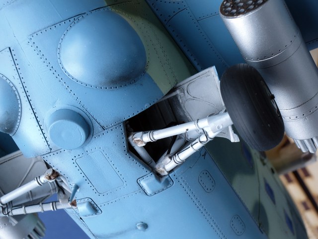 Алексей, спасибо. Грехи конечно есть, модель для меня очень большая и много закоулочков, куда просто не дошло внимание наверное (признаю это к своему стыду). Но вот одно место вы зря указали - это коричневая "смазка" на узлах сопряжения элементов стоек шасси.
