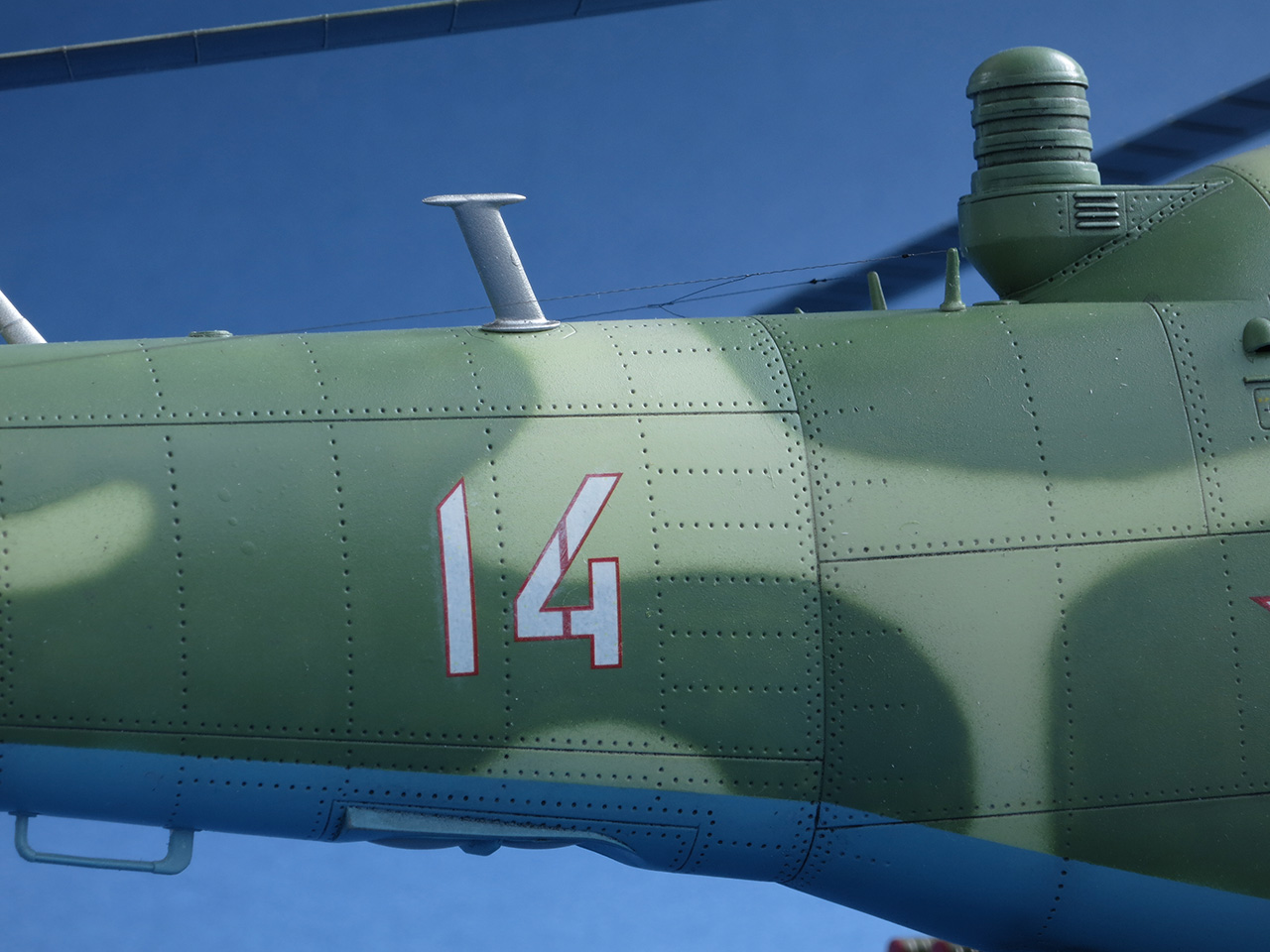 Хотя, в варианте ВВС РОССИИ есть варианты с номером на боку фюзеляжа в районе дверей, но никак не на капотах (как на Вашей модели, если вы с ней сравниваете).