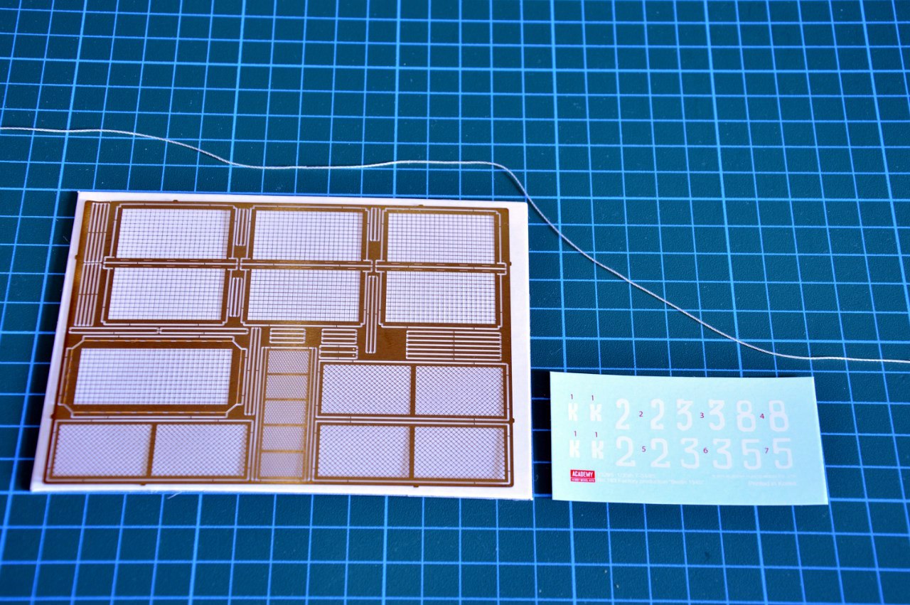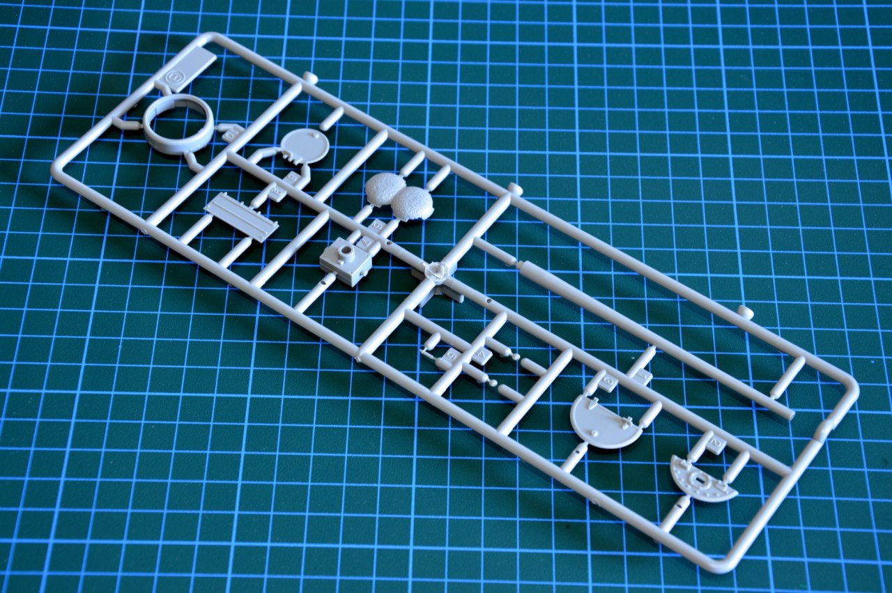 Набор является альтернативой Драгона и включает в себя 17-ть литников с деталями танка, трос из ниток, точеный ствол, литник с остеклением фары(на фото не попал), плату фототравления и декаль. Некоторые литники с деталями катков и разных мелочей - повторяются. Траки даны на литниках. Литье приемлемого качества, облоя и утяжин не обнаружено, толкатели на внутренних поверхностях. Стыковка оказалась на уровне Тамии или Менга на достойном уровне.
