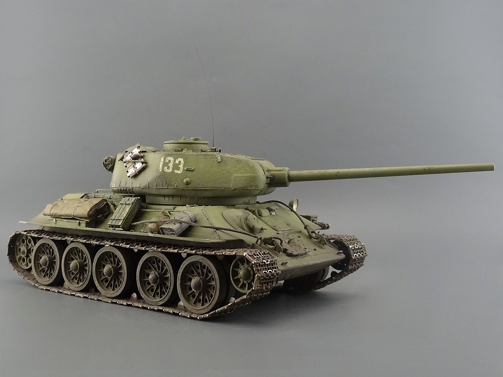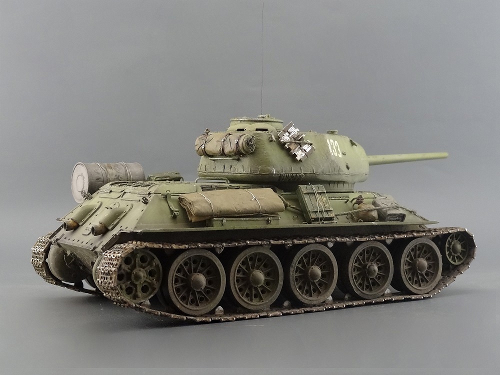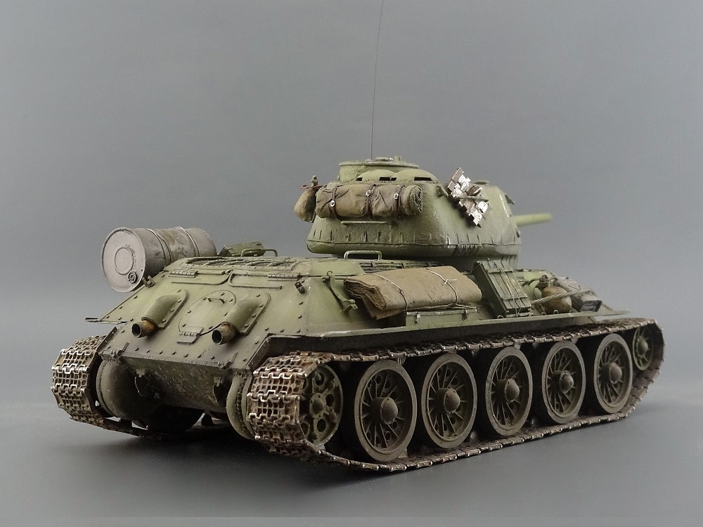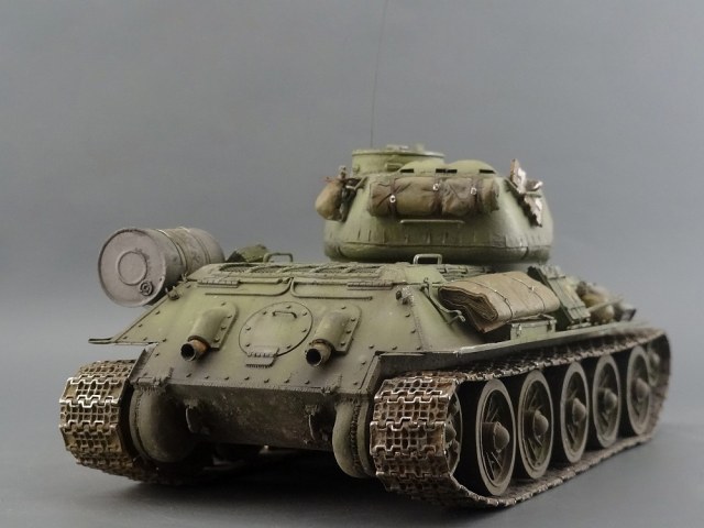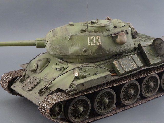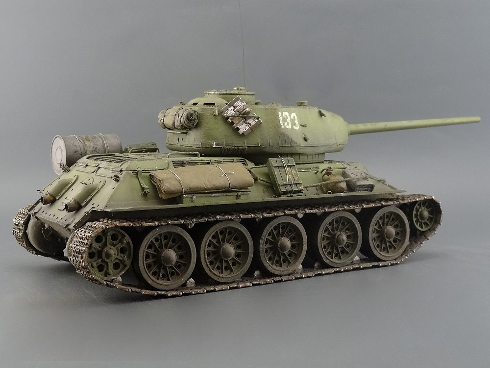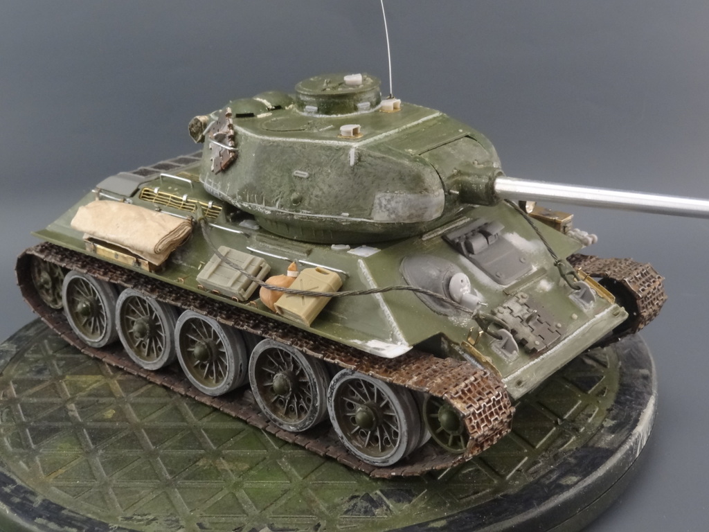 Смотрится "на ура". Понравилась модель. Бросающихся в глаза "косяков" не заметил, да и не хочется придираться к модели, которая весьма достойно смотрится. Покраска и тонировка на уровне. Кстати, тоже использую дешёвые "звездовские" 34-ки как основу, вполне годятся. С уважением.