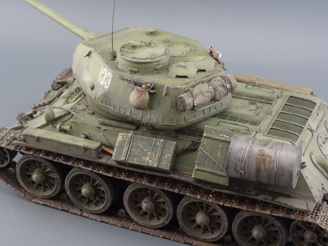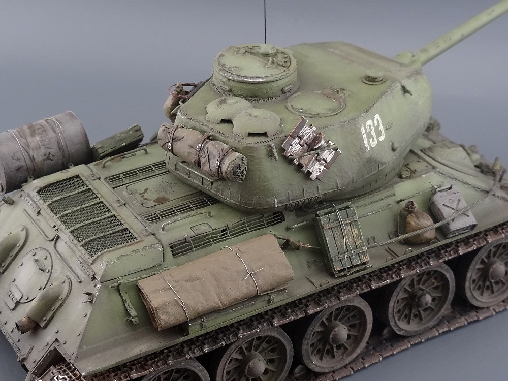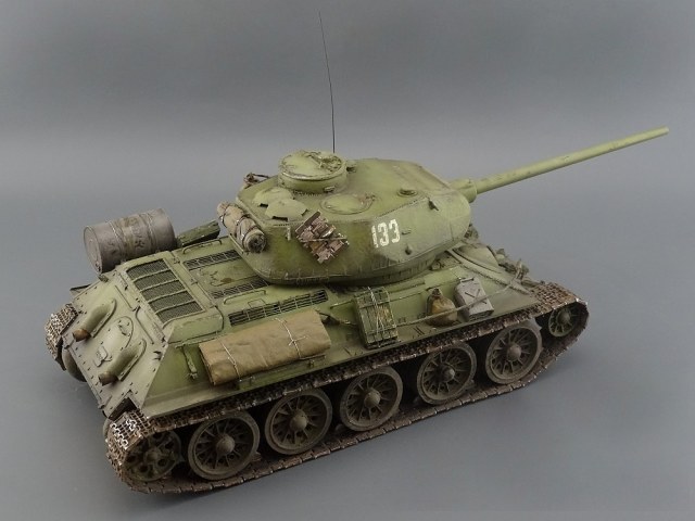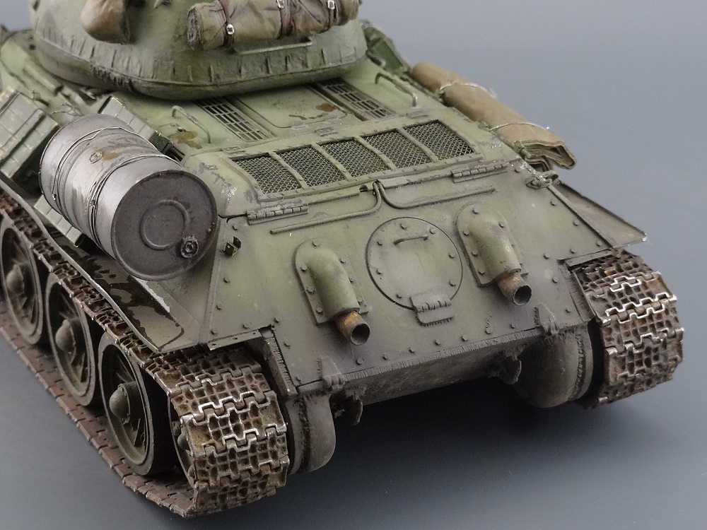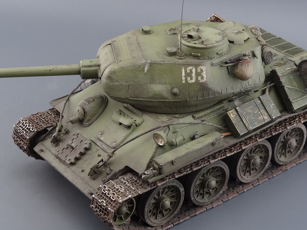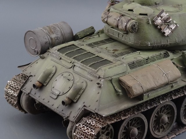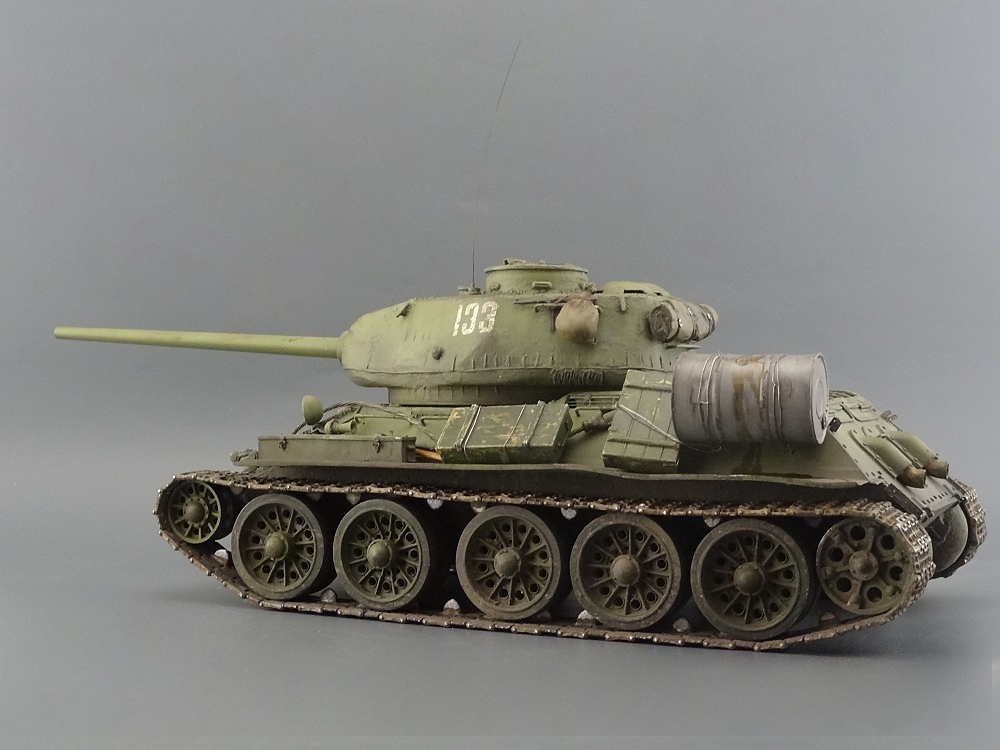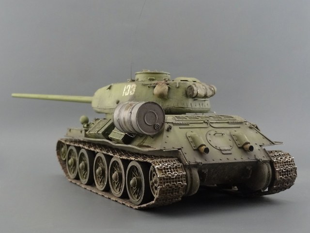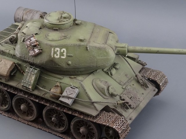 Смотрится "на ура". Понравилась модель. Бросающихся в глаза "косяков" не заметил, да и не хочется придираться к модели, которая весьма достойно смотрится. Покраска и тонировка на уровне. Кстати, тоже использую дешёвые "звездовские" 34-ки как основу, вполне годятся. С уважением.