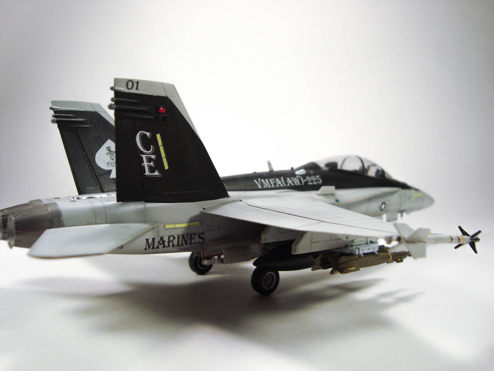 Название исправьте на f/a-18d. Это истребитель/штурмовик. Если правильно разглядел то на третьей фото с конца с уабами не все в порядке - следы от толкателей видны(?) и желтые каемочки очень в глаза бросаются(лучше б их накрасили), поленились сделать подкрыльевые АНО, а производитель их не дал(если будет интерес то просмотрите валки и поймёте о чем я).