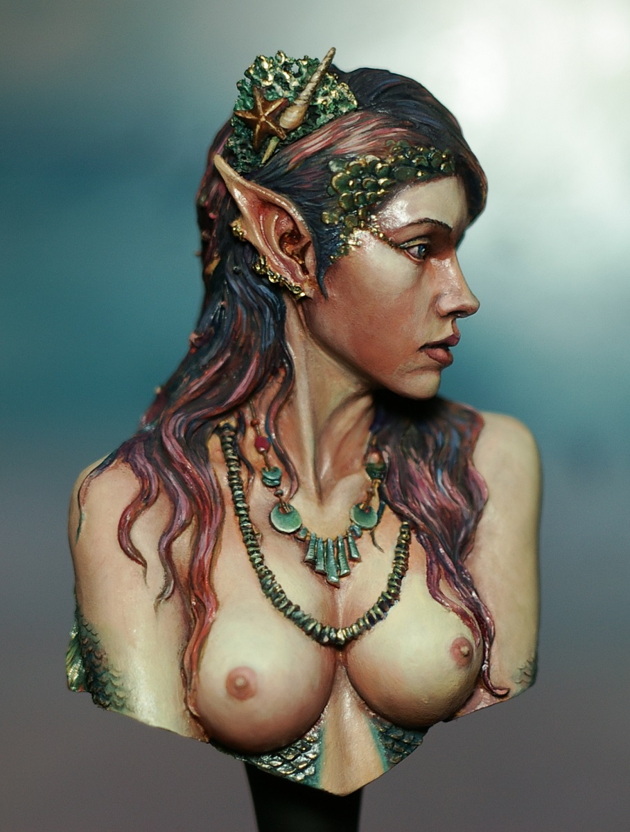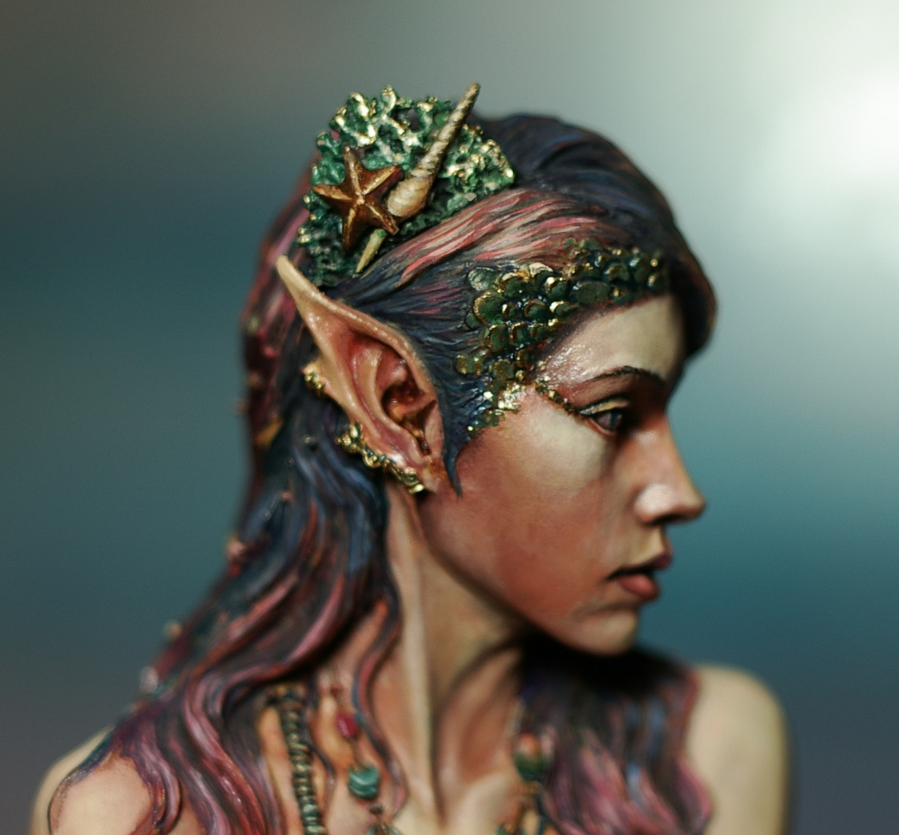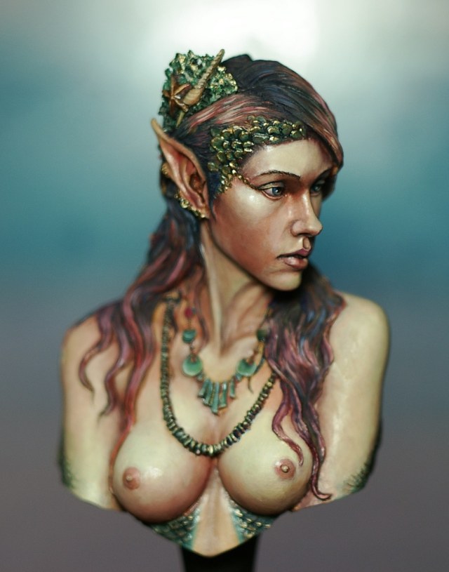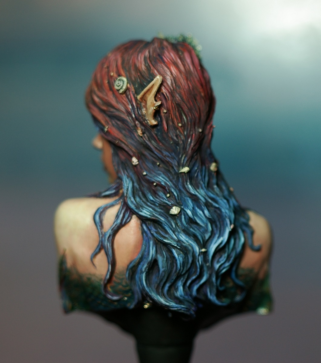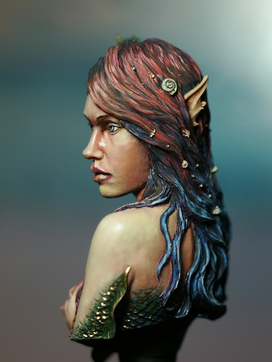 Очень впечатляет! По острым ушам принял бы за эльфийку, если бы не чешуя. А в чём смысл применения сразу трёх видов красок?