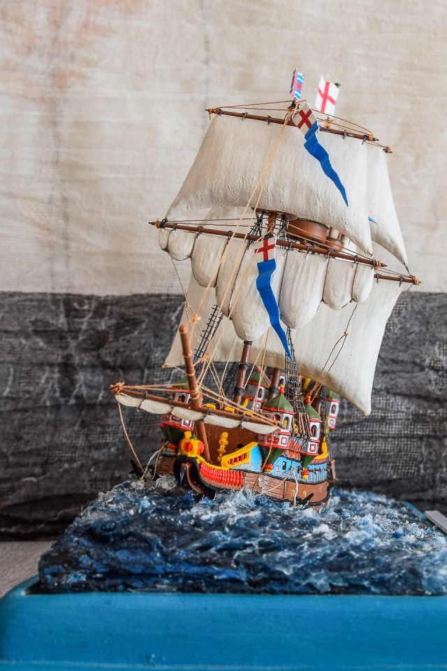 Хочется верить, что и его копия достойно пережила испытание водой, и достойно встала на якорь на модельной полочке.