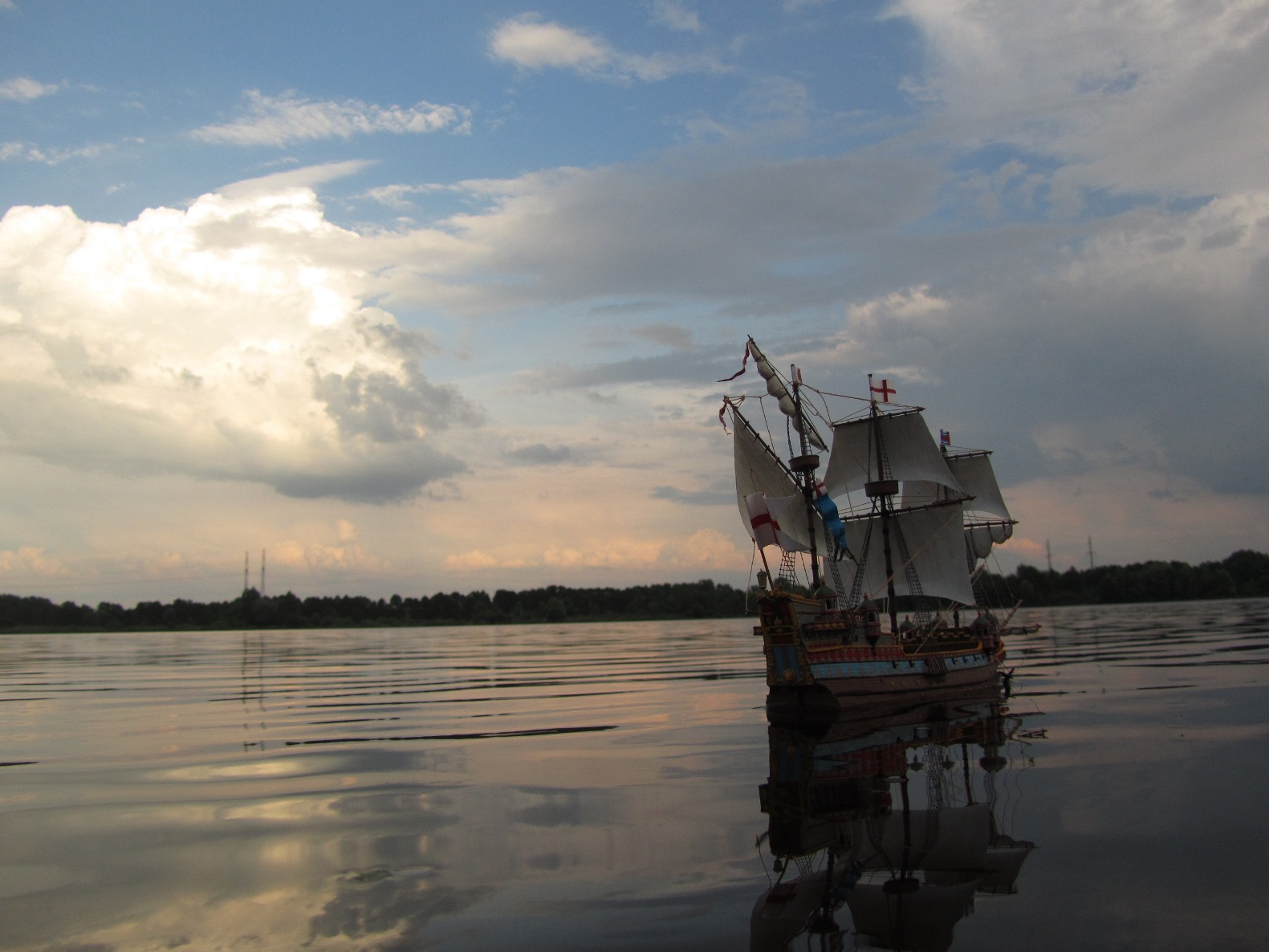 Из далека, на воде- смотрится. Уверен, модель принесла радость и довершение диорамы принесёт ещё больше. Если, по нынешним меркам КАРОПКИ и близко рассматривать,то в песочницу. Недочищены швы, такелаж никакой, покраска недостаточно аккуратная. Автор и сам указал на множество недочётов. Новую модель лучше начать в "сказках о стройке", многих недоработок удастся избежать.