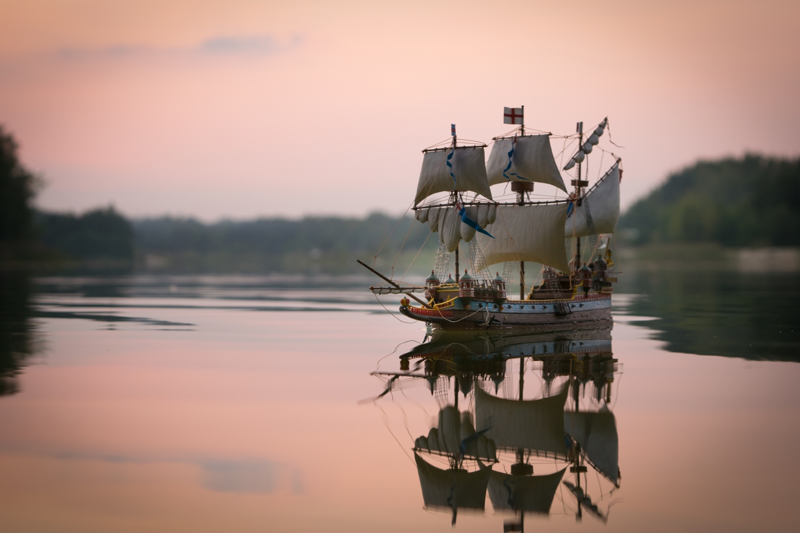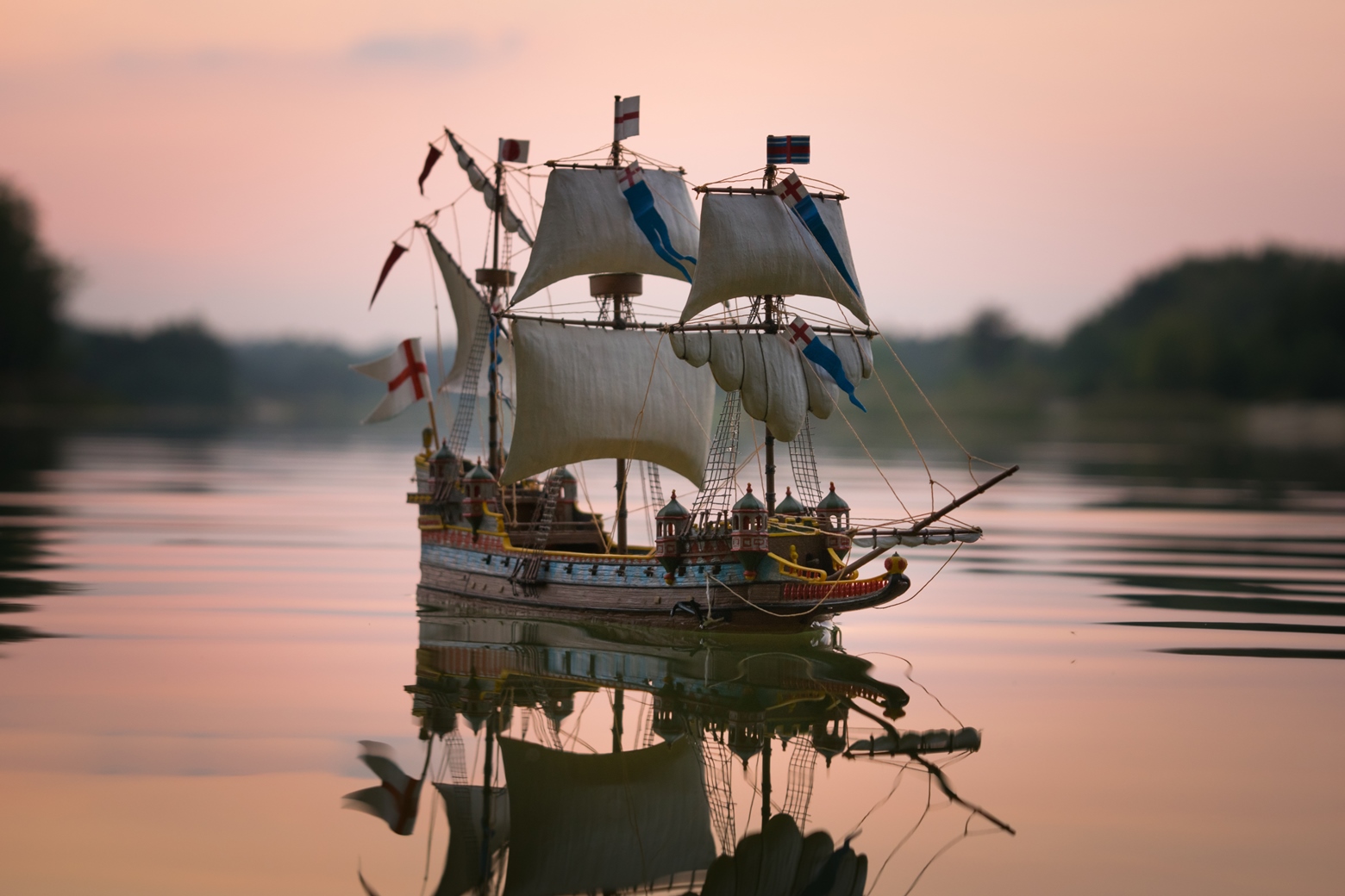 Умение "подать" модель дорогого стоит! Фото, не смотря на нелогичность полных парусов, красивейшие. С уважением.