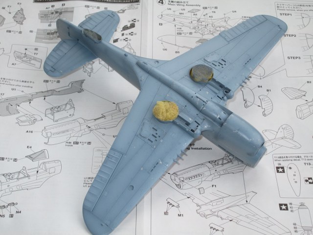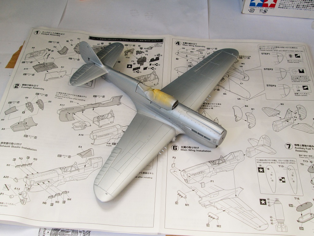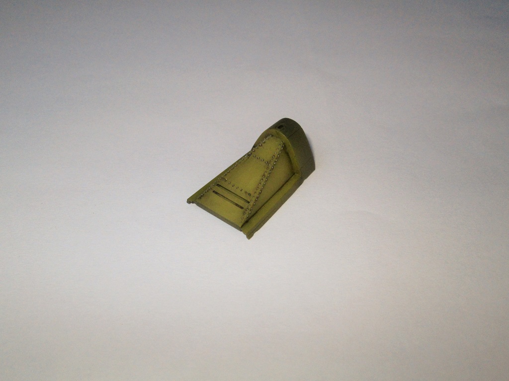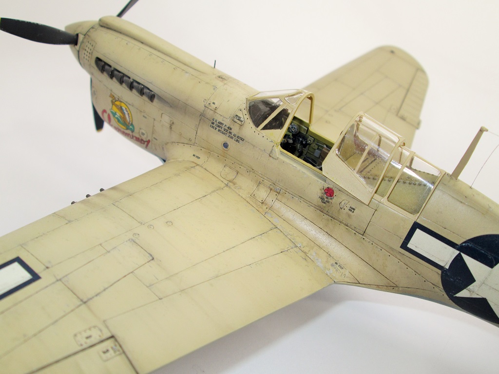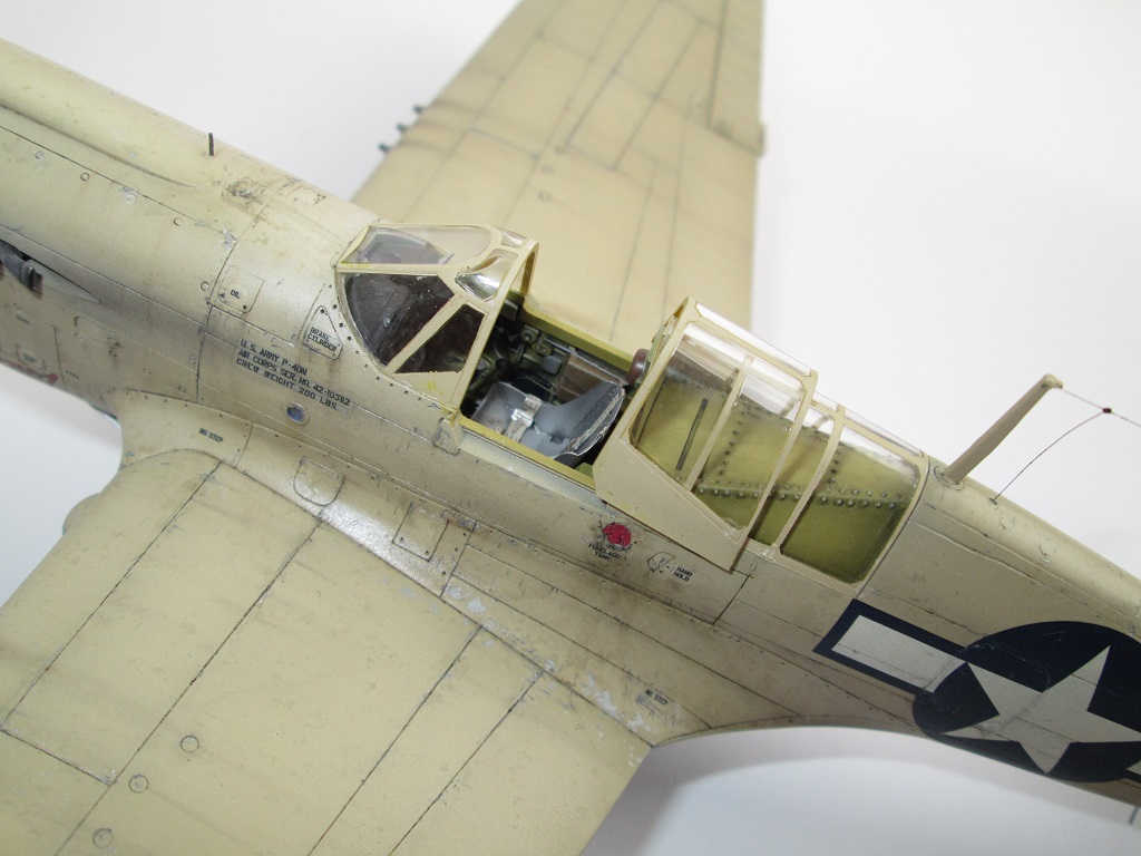 Кок винта плохо стыкуется с фюзеляжем, в 48-ом, да ещё и на светлом камуфляже очень бросается в глаза. Передняя част фонаря кабины сидит "удовлетворительно", очень заметны огрехи по лобовой части. Цвет переплёта фонаря сильно контрастирует с остальной моделью(краска сильно чистая). Огромные заклёпки в кабине.