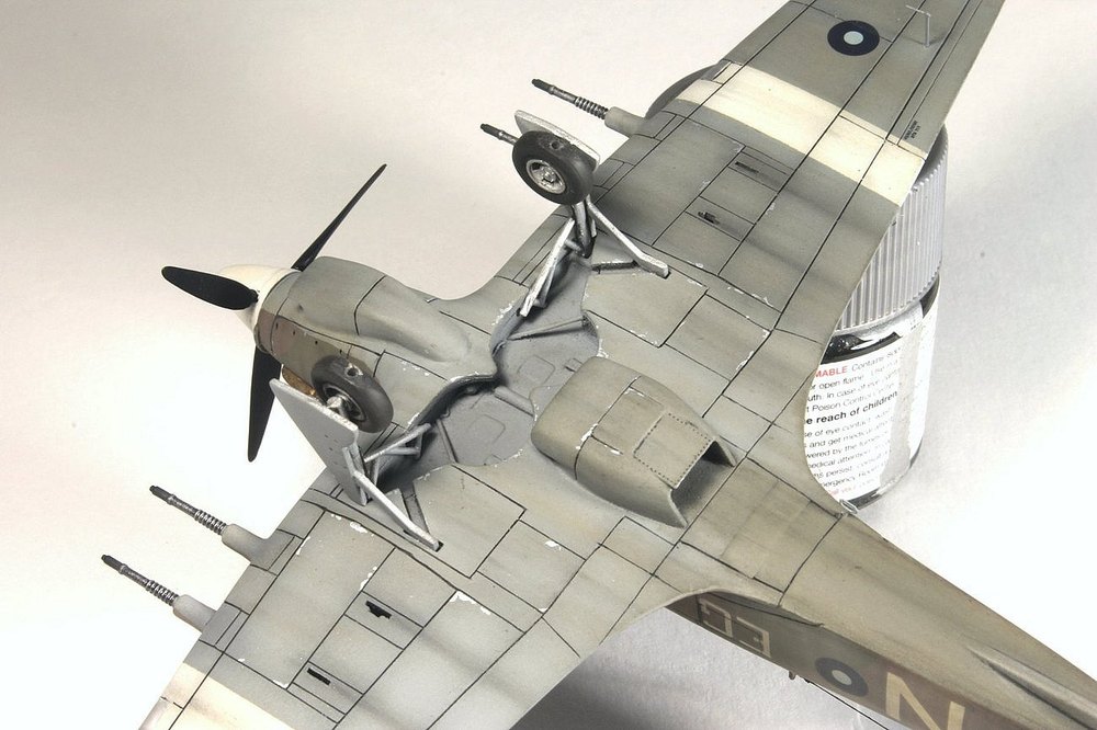 Если честно, сколами на фонаре я маскировал грубый переплет)) А по поводу ниш шасси, так у британцев они вроде все в цвет нижних поверхностей. По инструкции точно так.