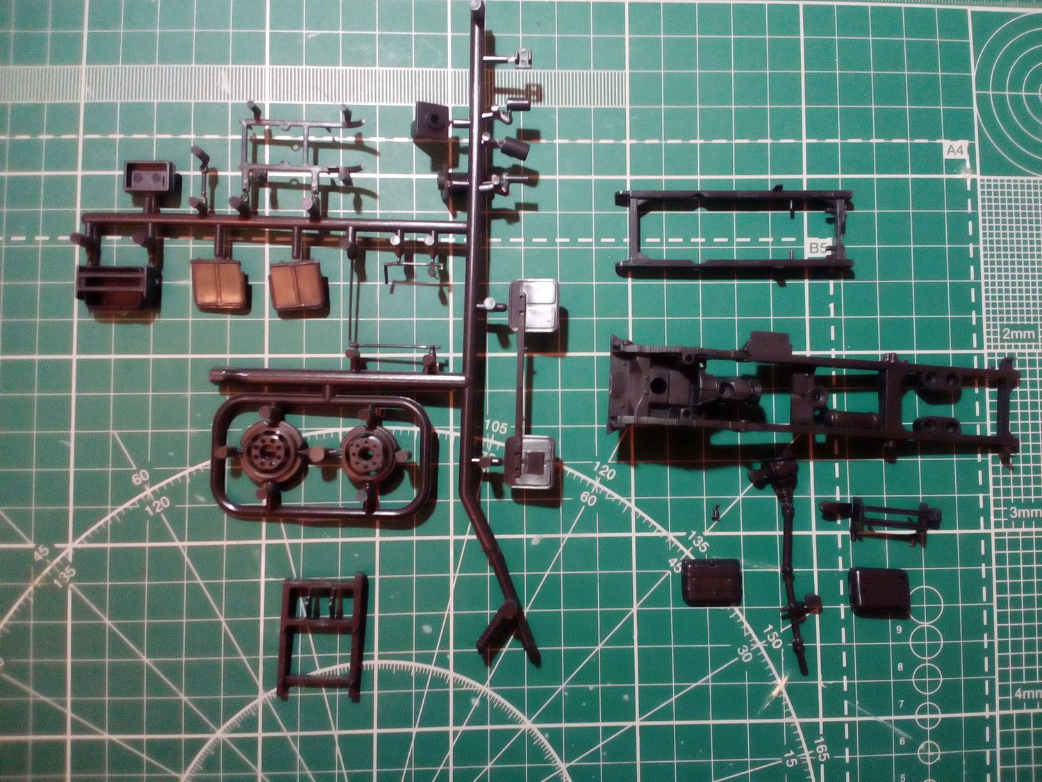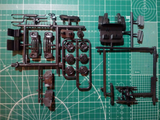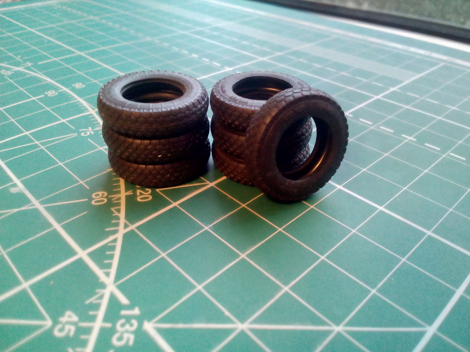Отливки из черного цвета. На счет стыкуемости-сборка покажет. Присутствуют два варианта облицовки радиатора. Покрышки видимых нареканий не вызвали.
