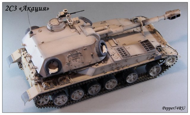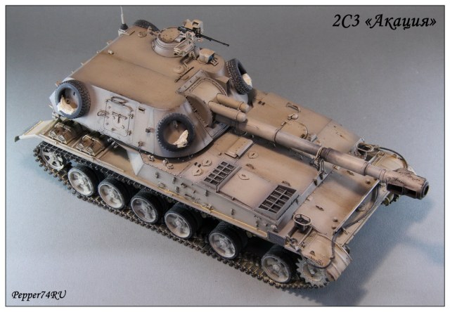 Модель собрана с небольшими доработками, переделана кое-какая мелочёвка, добавлен буксировочный трос, На башню установил покрышки.