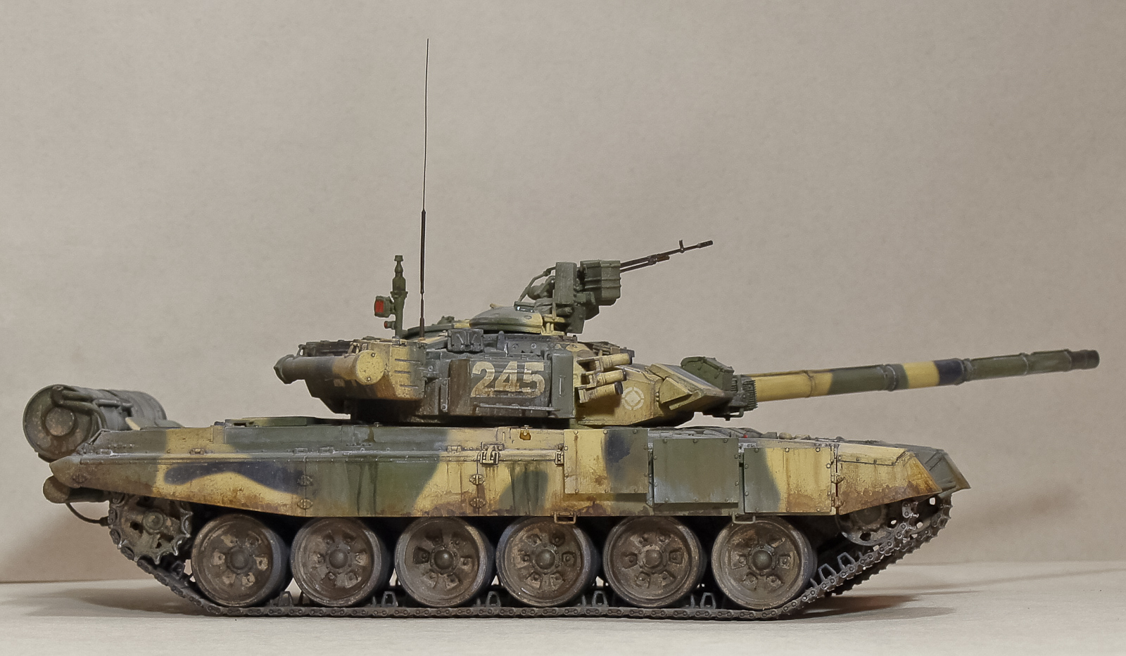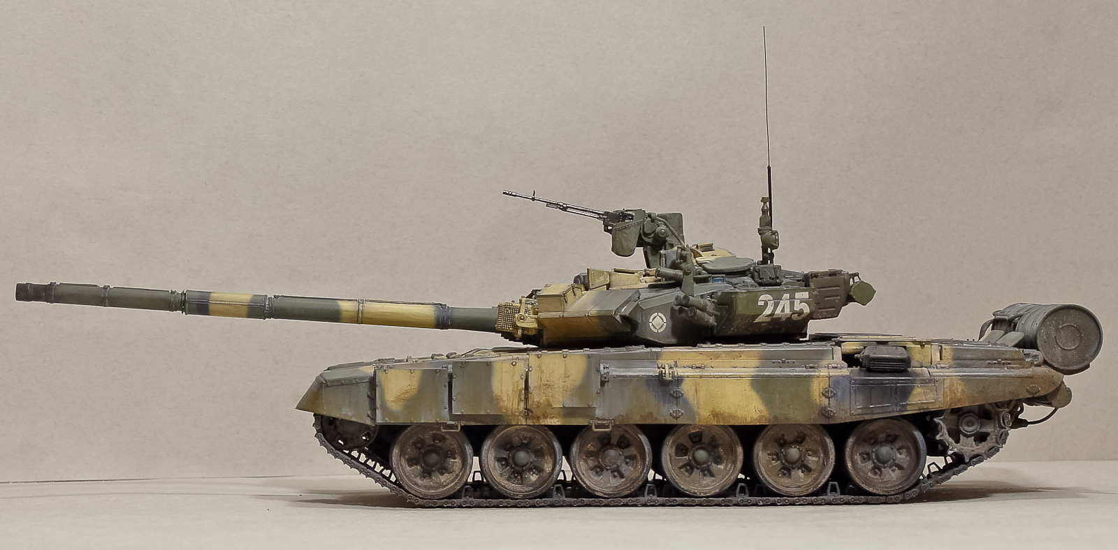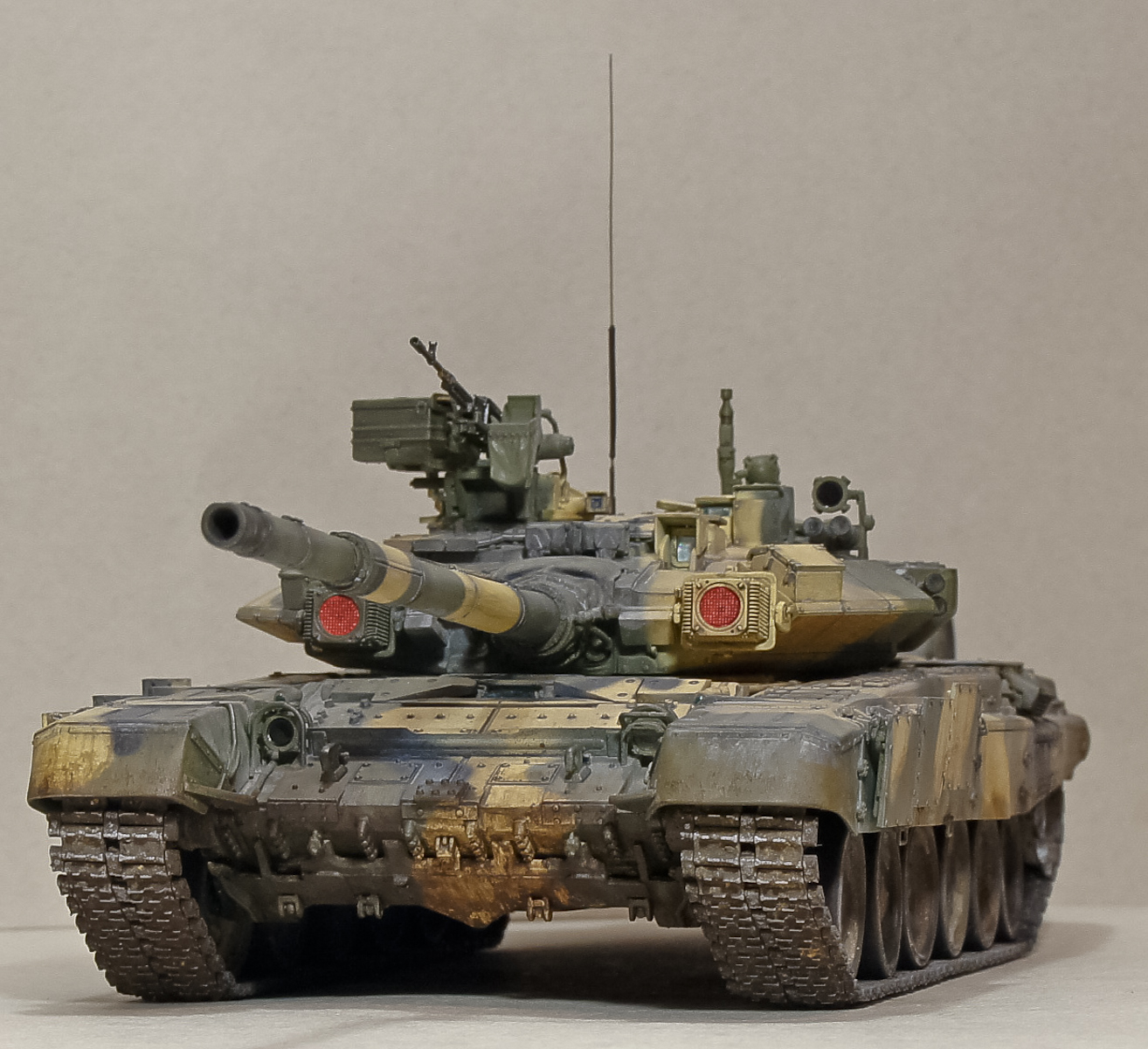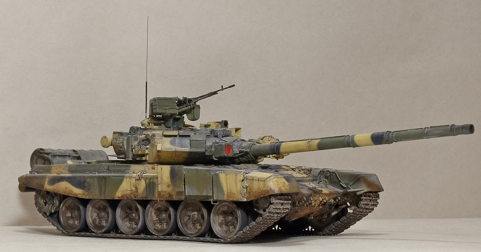 Андрей, 90-й получился классный, хотя соглашусь с мнением, что грязь на бортах смотрится больше как ржавчина. Добавь пигментов земли+бетон. Будет посветлее, чем обычная грязь на опорных катках, а это даст оптический эффект не толстого (полупрозрачного) слоя грязи.