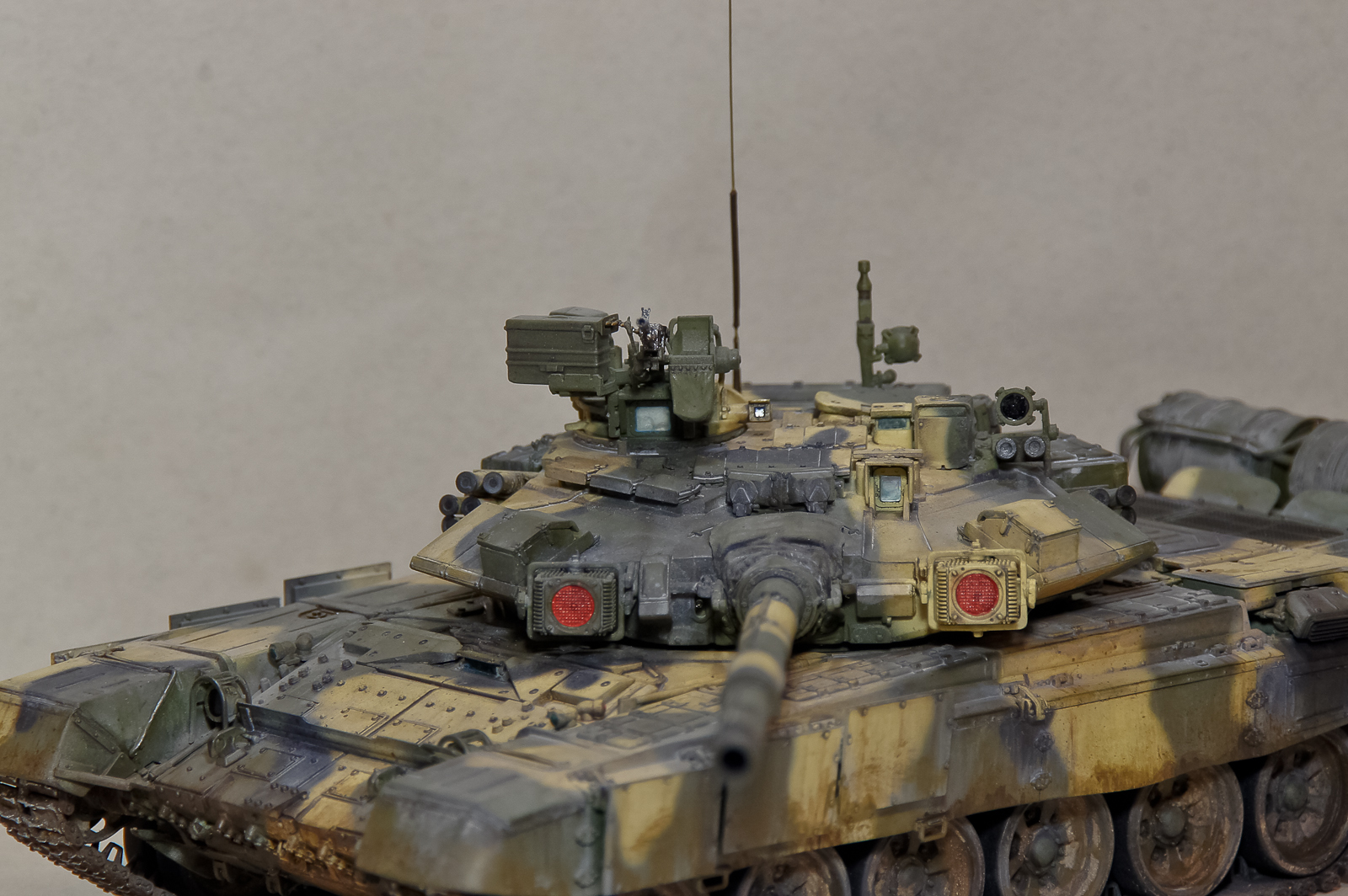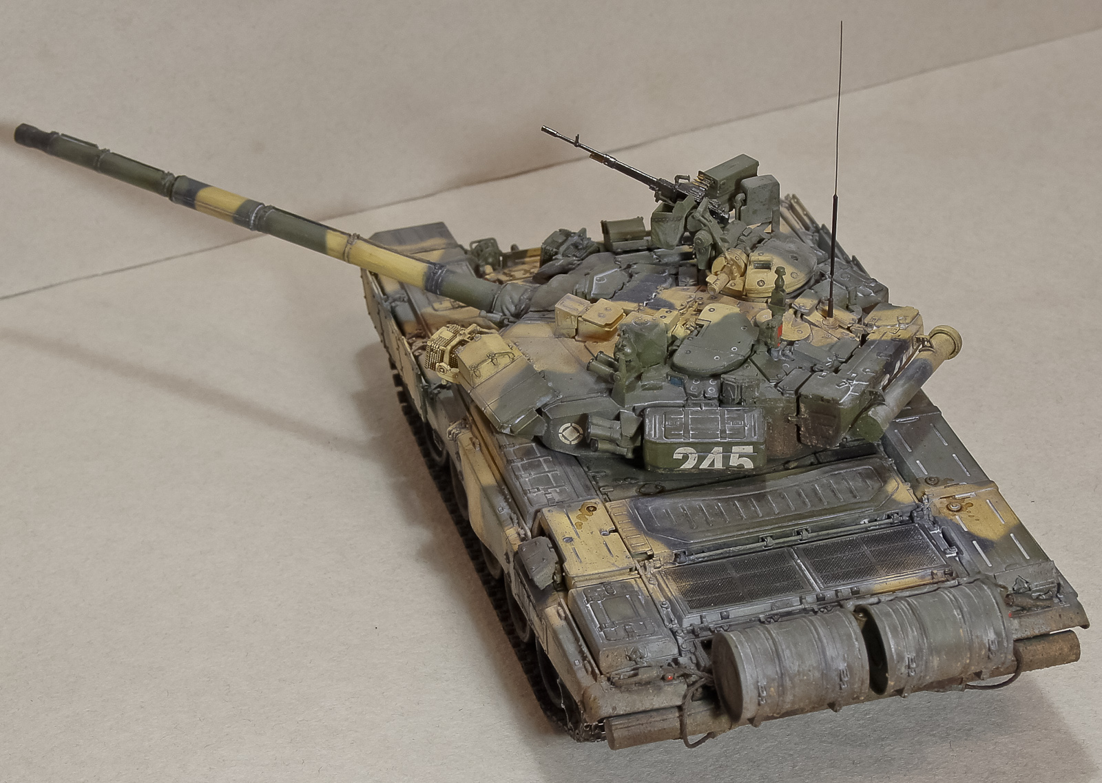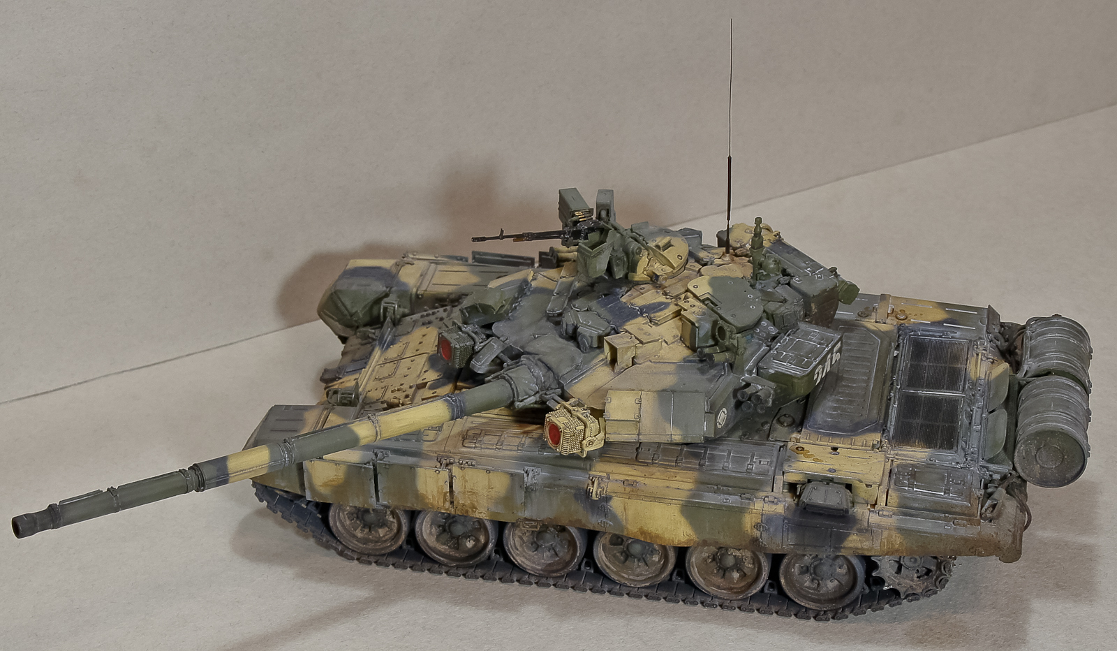 Андрей, 90-й получился классный, хотя соглашусь с мнением, что грязь на бортах смотрится больше как ржавчина. Добавь пигментов земли+бетон. Будет посветлее, чем обычная грязь на опорных катках, а это даст оптический эффект не толстого (полупрозрачного) слоя грязи.