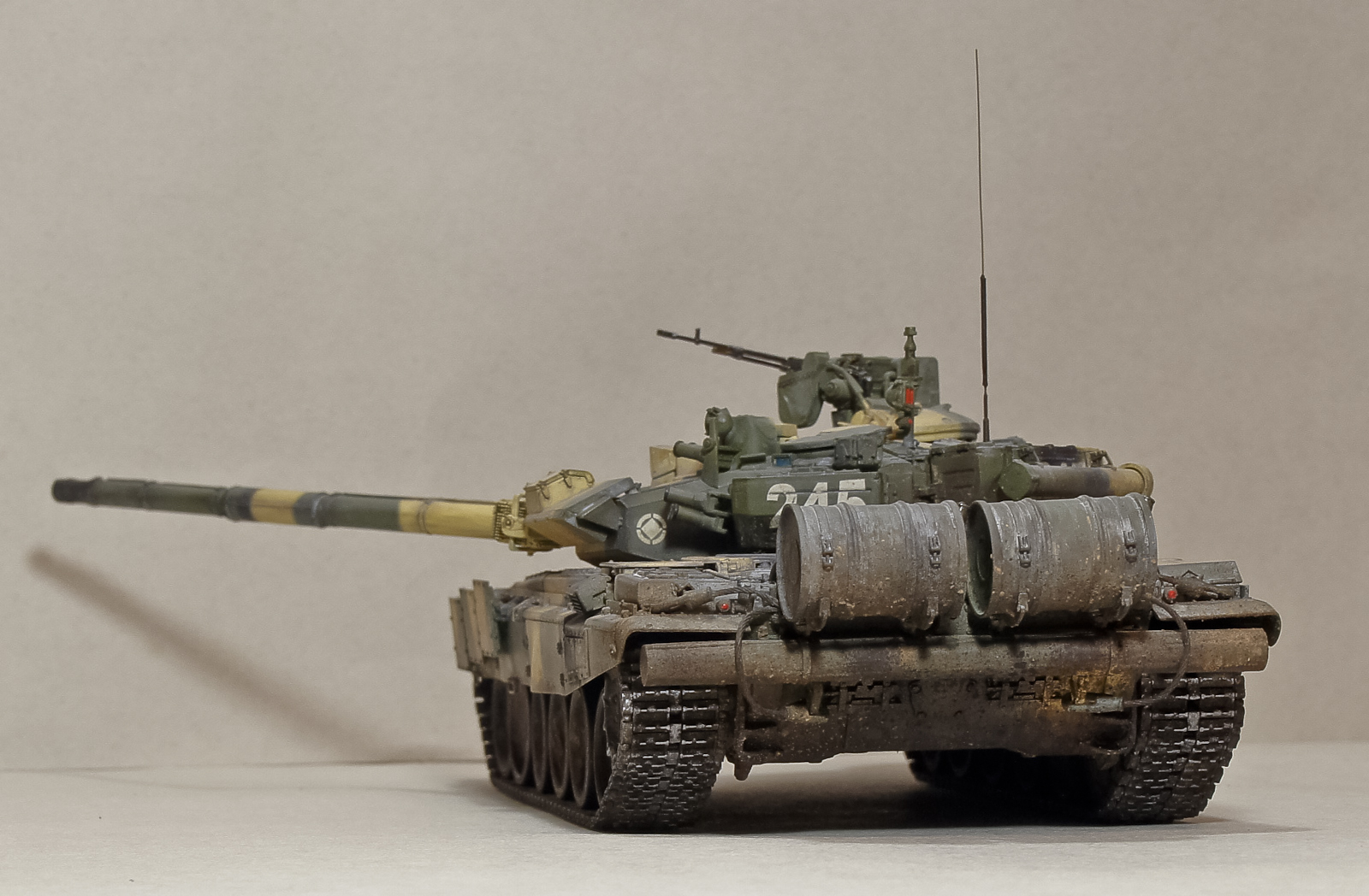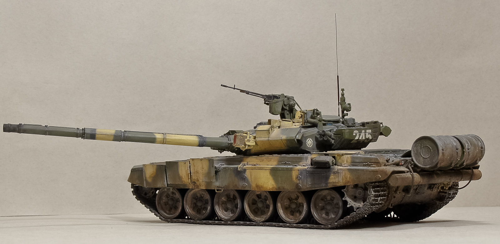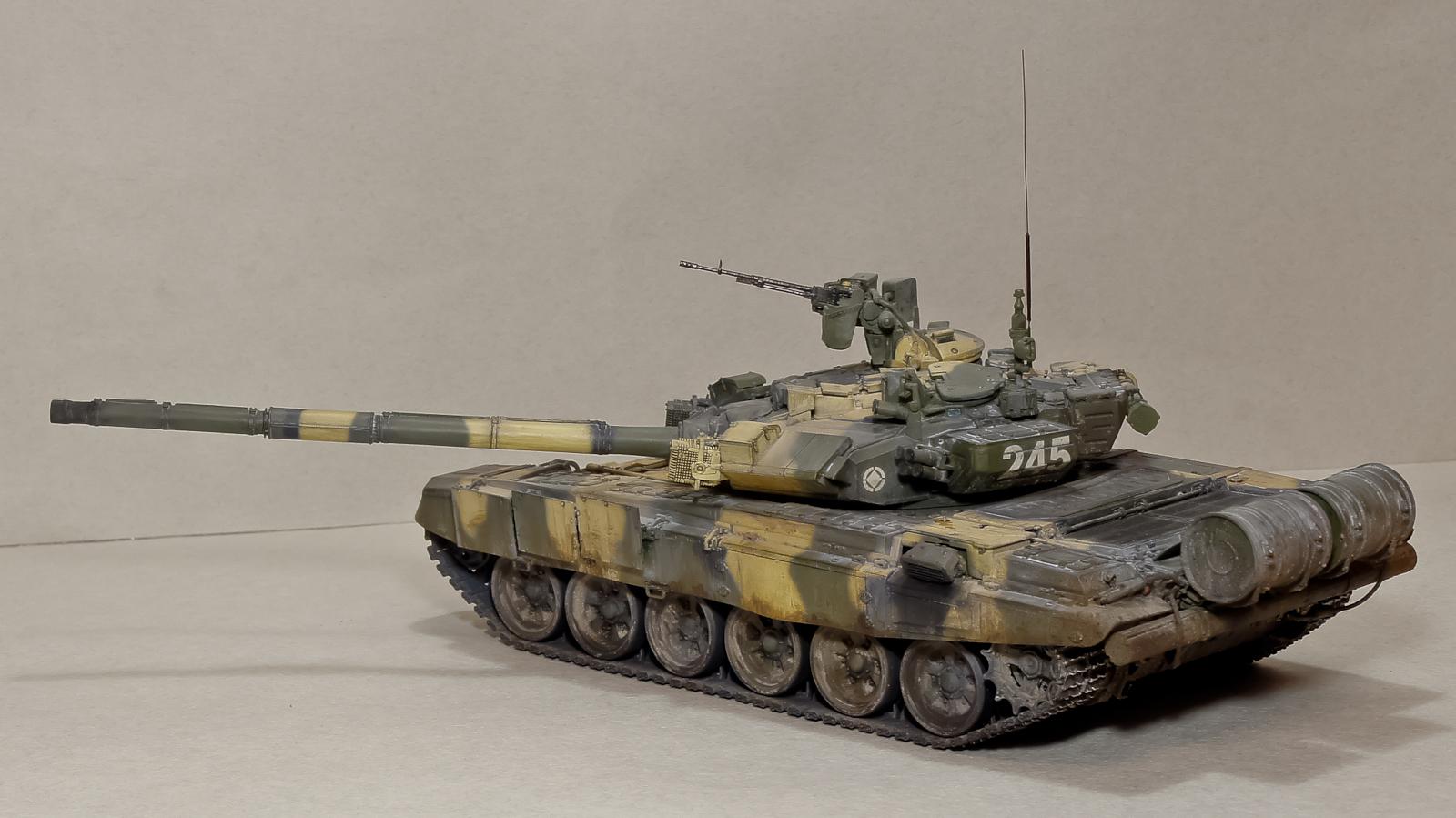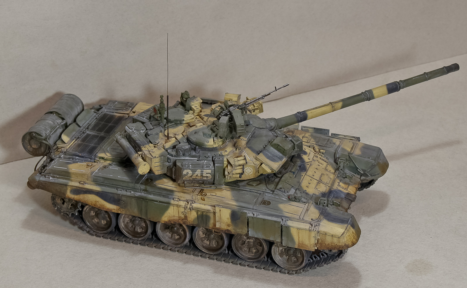 Андрей, 90-й получился классный, хотя соглашусь с мнением, что грязь на бортах смотрится больше как ржавчина. Добавь пигментов земли+бетон. Будет посветлее, чем обычная грязь на опорных катках, а это даст оптический эффект не толстого (полупрозрачного) слоя грязи.