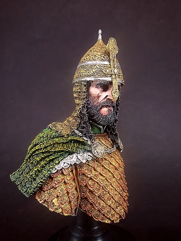 Салахуддин аль-Аюби - бюст 1/10 производитель Nuts Planet. Смола. Великолепная скульптура , прекрасное портретное сходство , чётко проделанные мелкие детали чешуйчатого доспеха и кольчуги , Изумительная имитация чеканки на шлеме.