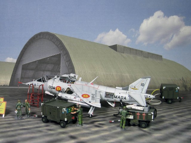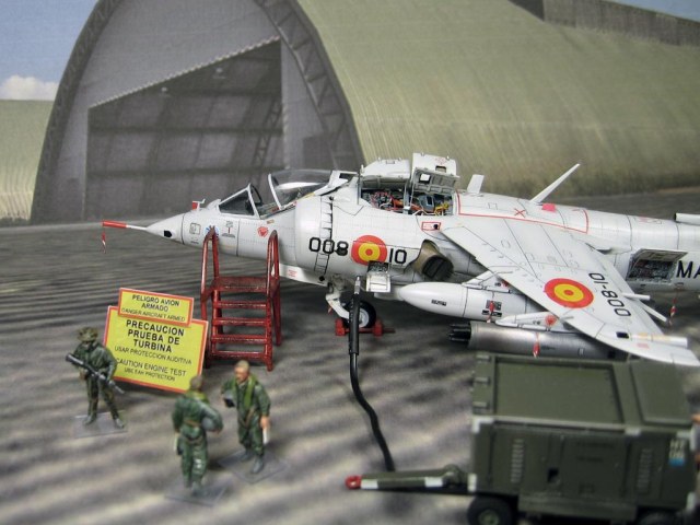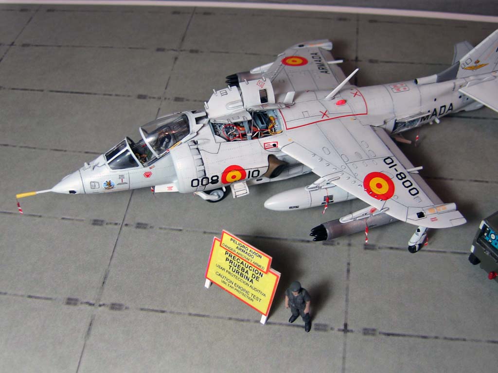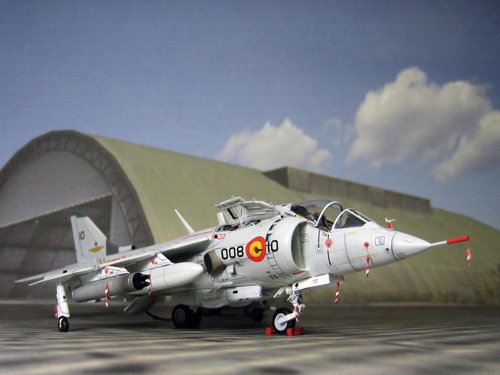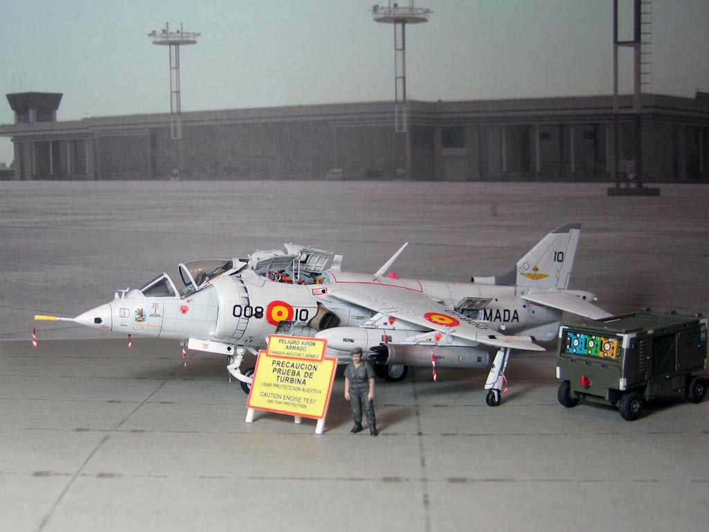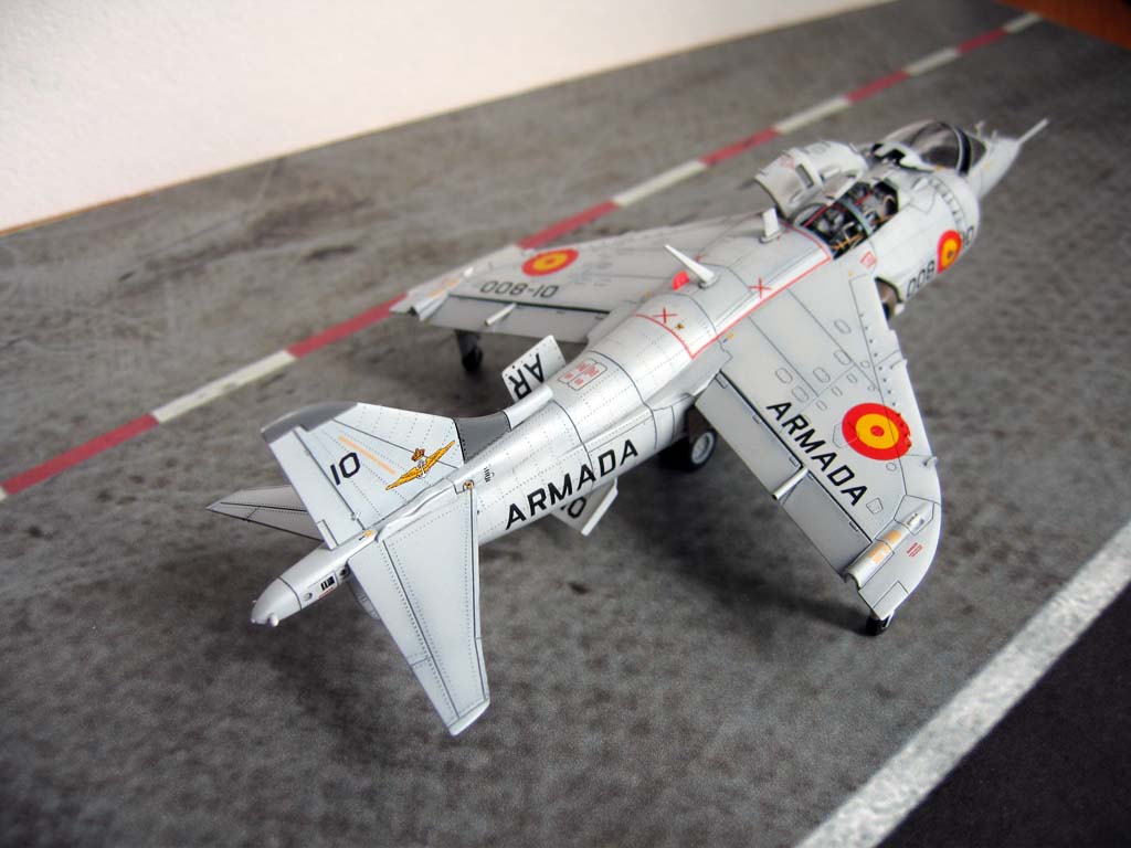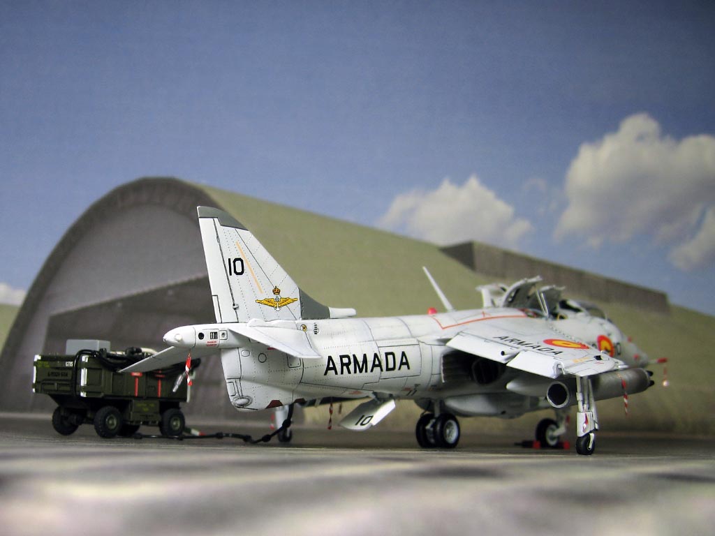 Модель фирмы AIRFIX самолёта вертикального взлёта и посадки HawkerSiddeleyHarrier AV-8A. Одним из покупателей данного самолёта была Испания. В 1972 году были впервые осуществлены взлёт и посадка на испанский лёгкий авианосец «Дедало». И затем, в скором времени, испанские ВМС закупили самолёты, разработанные для корпуса морской пехоты США. Английское обозначение испанских бортов HarrierMk 55, американская же модификация именовалась AV-8S. В Испании самолётам присвоили испанское обозначение VA.1 MATADOR.