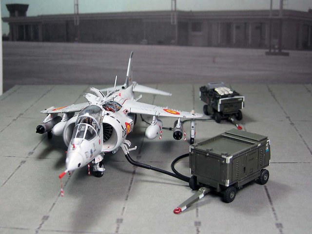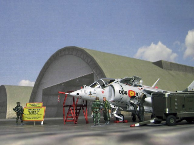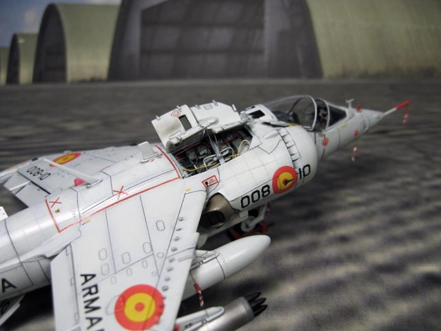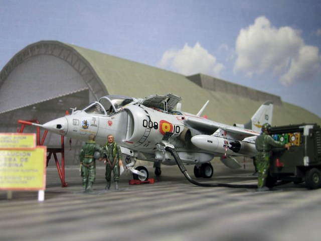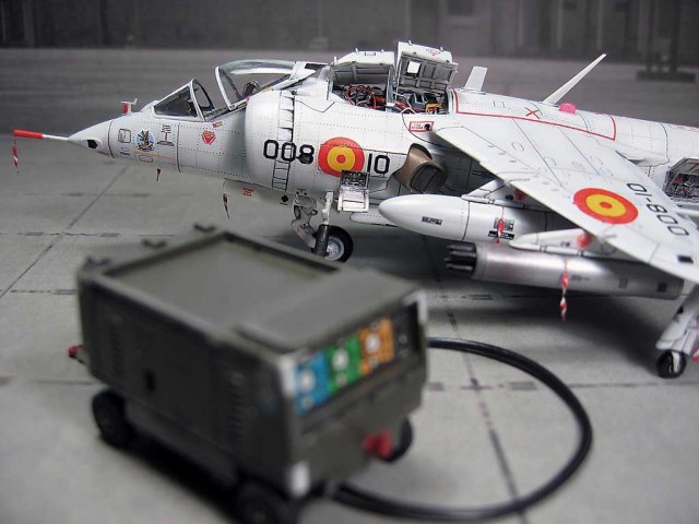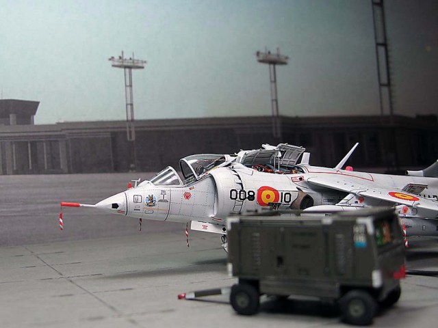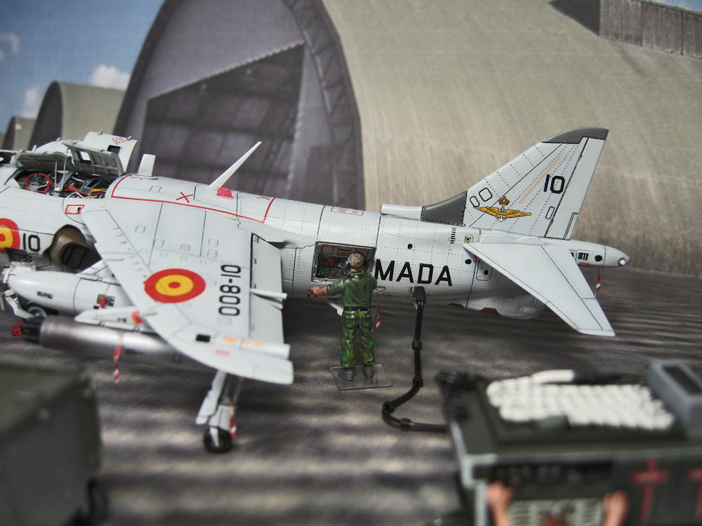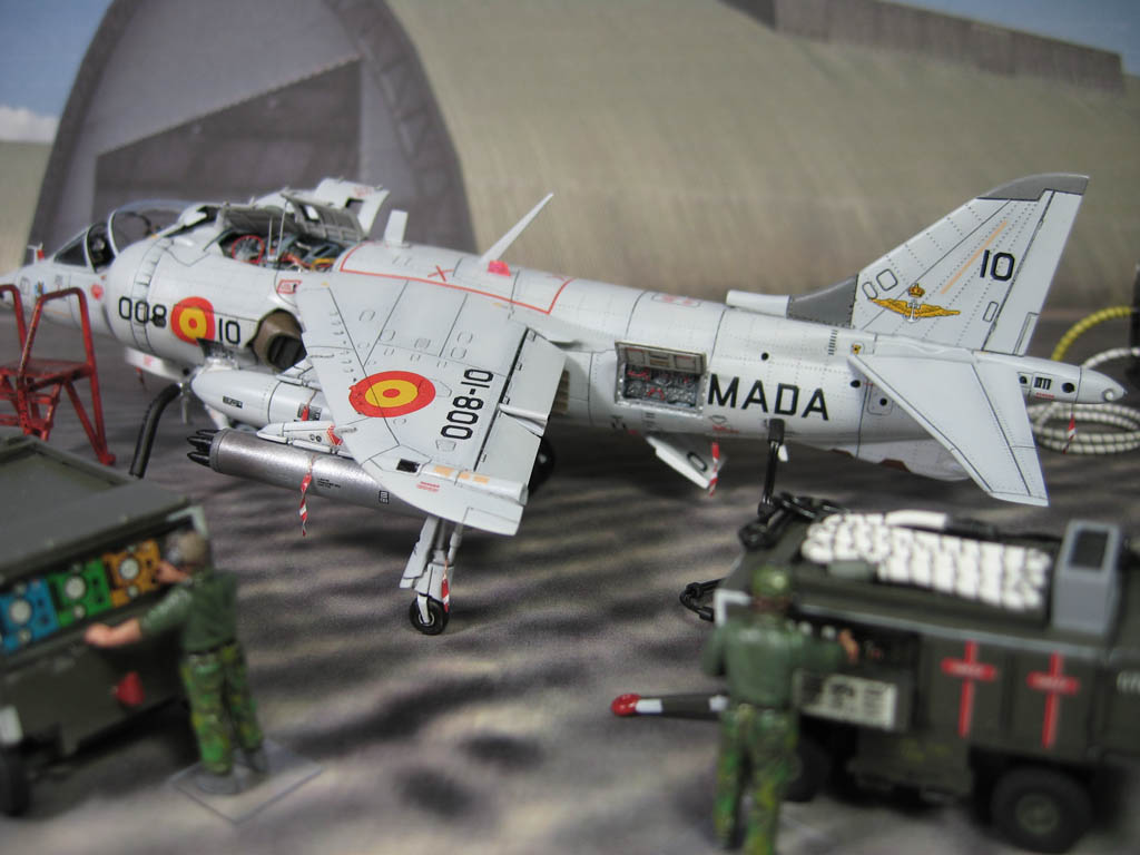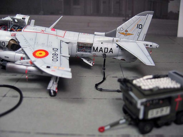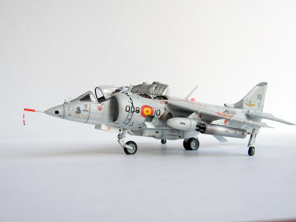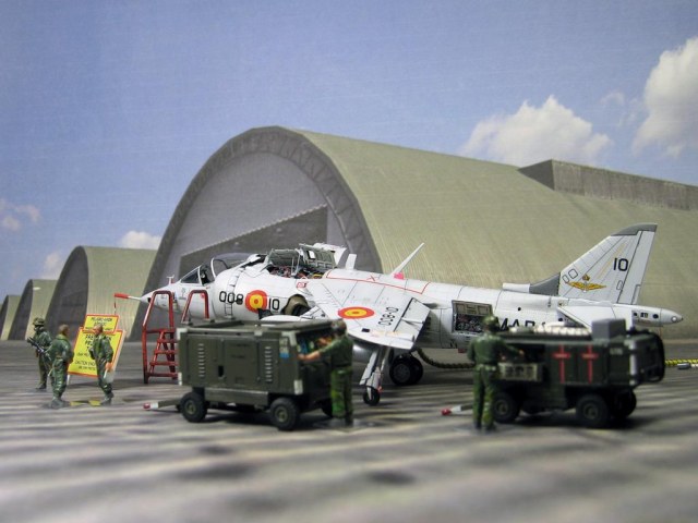 Модель фирмы AIRFIX самолёта вертикального взлёта и посадки HawkerSiddeleyHarrier AV-8A. Одним из покупателей данного самолёта была Испания. В 1972 году были впервые осуществлены взлёт и посадка на испанский лёгкий авианосец «Дедало». И затем, в скором времени, испанские ВМС закупили самолёты, разработанные для корпуса морской пехоты США. Английское обозначение испанских бортов HarrierMk 55, американская же модификация именовалась AV-8S. В Испании самолётам присвоили испанское обозначение VA.1 MATADOR.