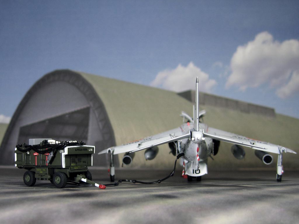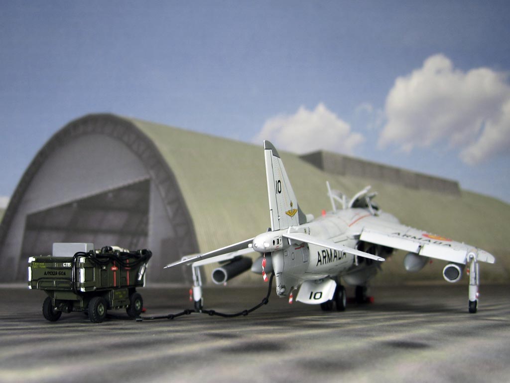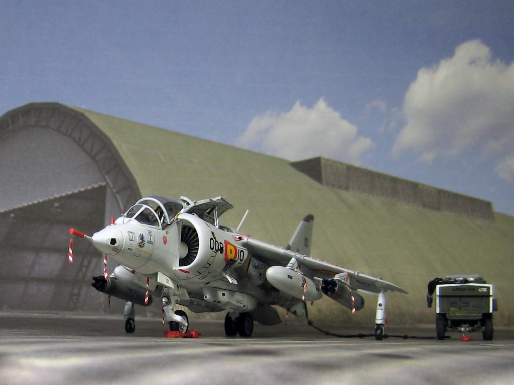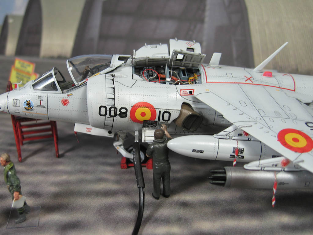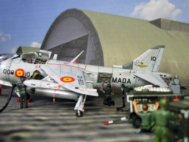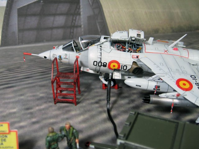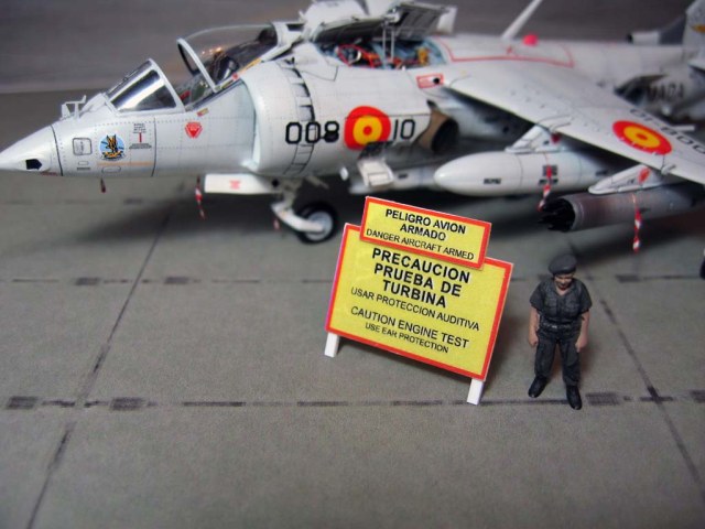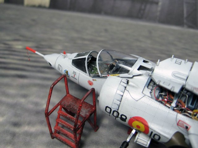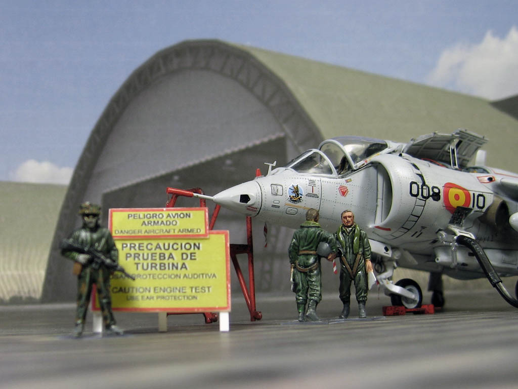 Модель фирмы AIRFIX самолёта вертикального взлёта и посадки HawkerSiddeleyHarrier AV-8A. Одним из покупателей данного самолёта была Испания. В 1972 году были впервые осуществлены взлёт и посадка на испанский лёгкий авианосец «Дедало». И затем, в скором времени, испанские ВМС закупили самолёты, разработанные для корпуса морской пехоты США. Английское обозначение испанских бортов HarrierMk 55, американская же модификация именовалась AV-8S. В Испании самолётам присвоили испанское обозначение VA.1 MATADOR.