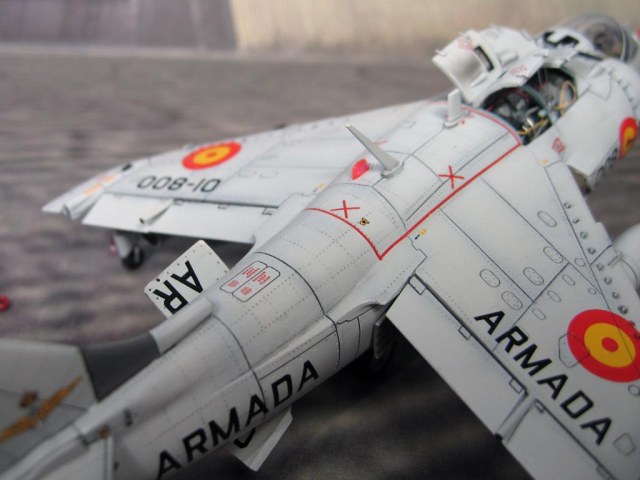 У американских АV-8A и испанских AV-8S было другое оборудование пилотских кабин (другое кресло, другая приборная доска), нежели у английского варианта Gr.Mk.1a или Gr.Mk.3. Tак что травление для второй версии Харриеров не пойдёт.