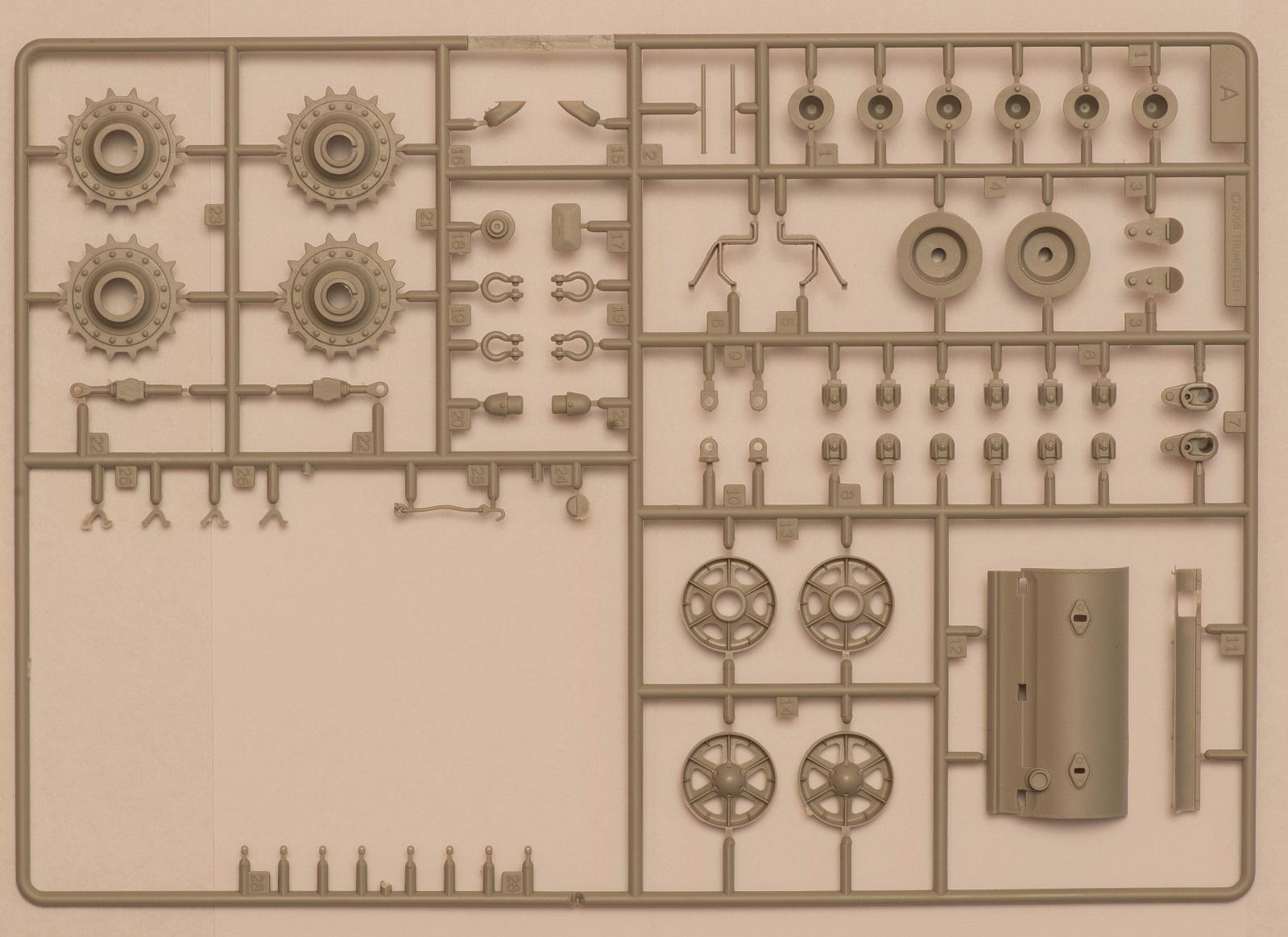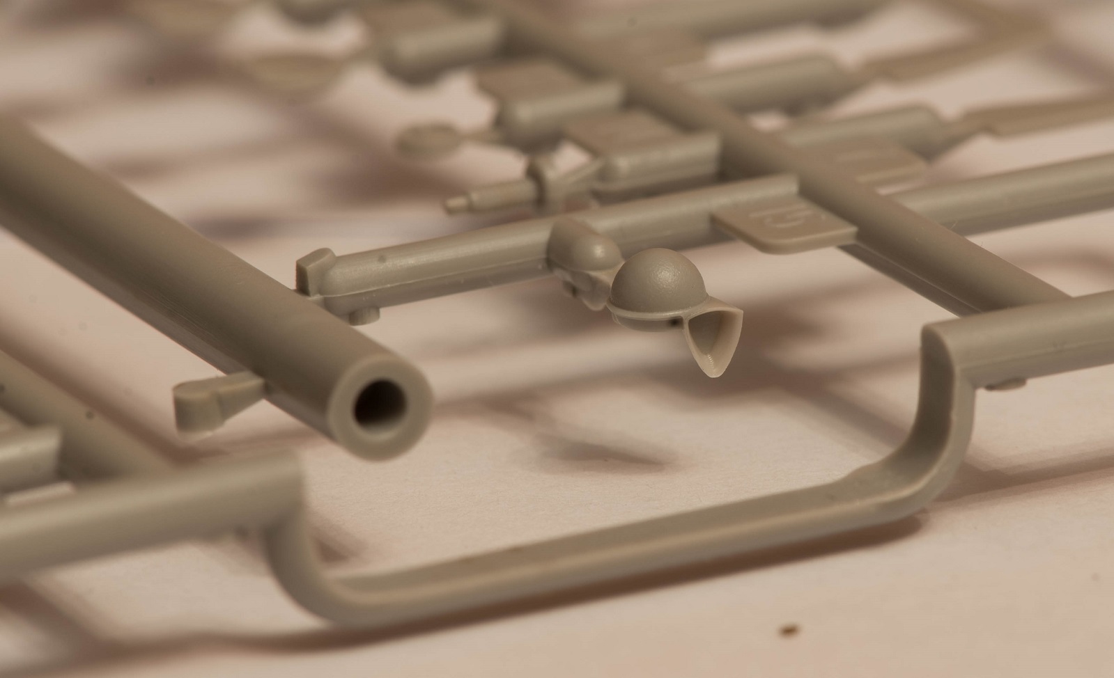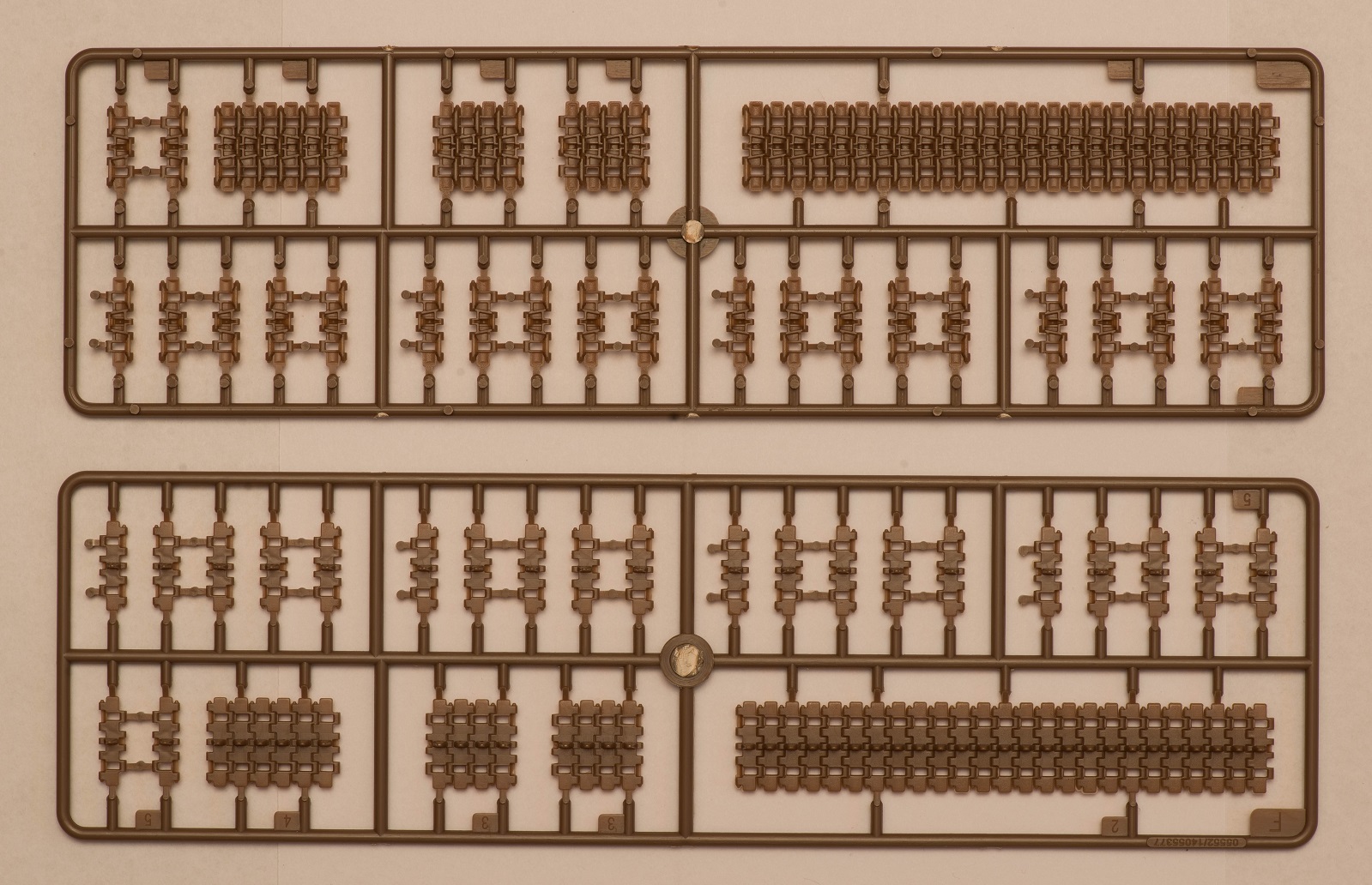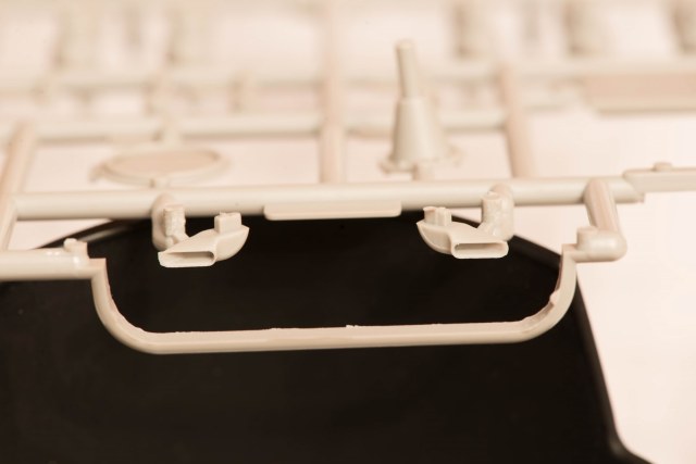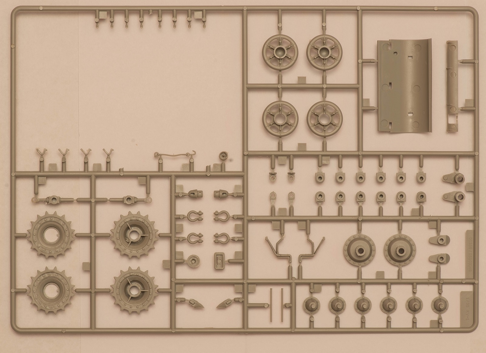 2) В наборе даны 2 литника с деталями, как я понял, от КВ-5. за счёт этого у вас в запасе останется 2 выхлопных патрубка весьма хорошего качества, в отличие от такового на линейке ранних КВ того же Трубача, которые страдают разной толщиной стенок. На фото это не очень заметно, т.к. присутствует небольшой облой.