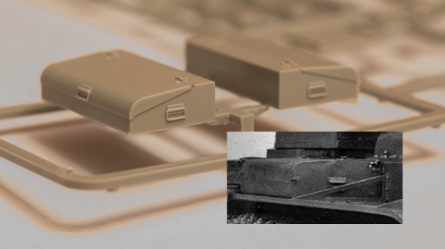 6) Ящики ЗИП даны позднего типа, а на фото реального КВ-220 отчётливо видно, что стояли ранние. Исправить можно только заменой на запасные из наборов КВ-2 1939 г. или покупкой ФТД от Абера и пр.