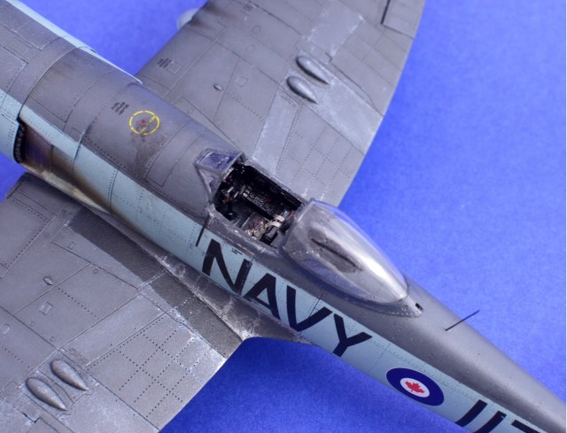 Модель от Trumpeter в целом очень понравилась, пластик приятен на ощуп, отлично собирается и даже клеп не выглядит китайски-паровозным. Варианты из штатной декали меня не вдохновили, поэтому использовал декаль Print Scale c вариантом из RCAF, но о выборе своем горько пожалел. Сказать, что декаль оказалась отвратительной, значит ничего не сказать, в процессе нанесения постоянно разваливалась на мелкие кусочки, смещения цветов и переразмеренные оз тоже совсем не обрадовали.
