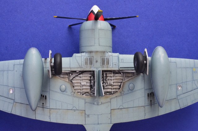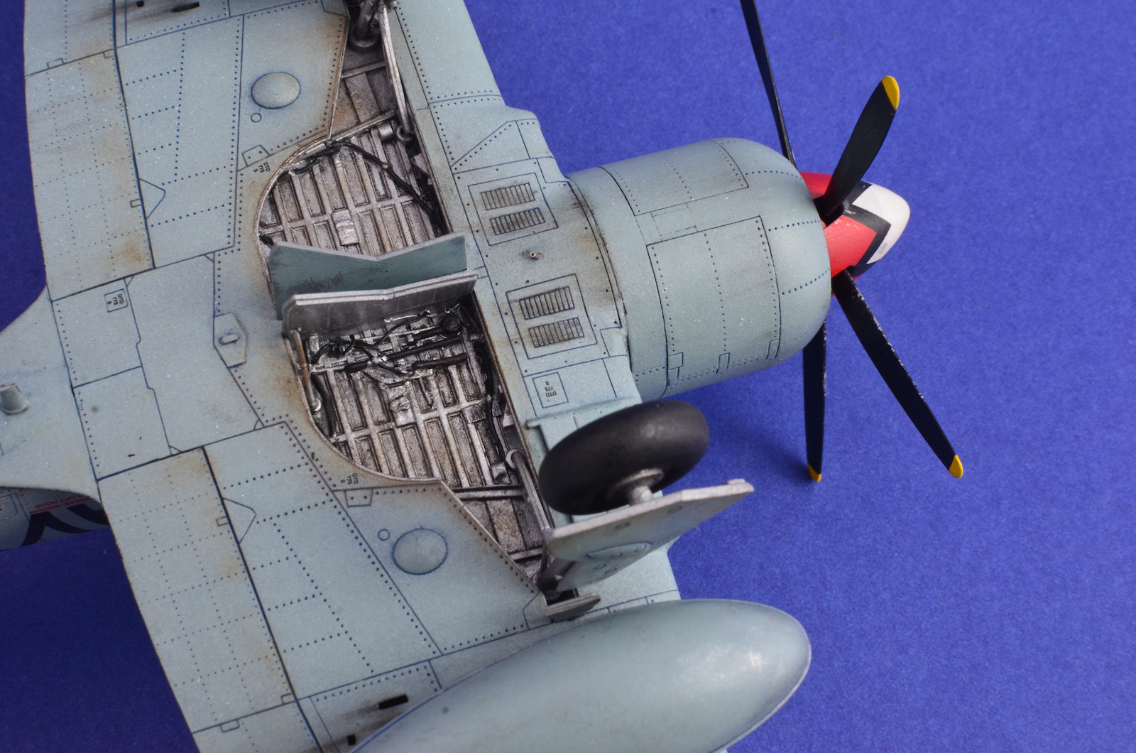 В процессе сборки доработал кокпит с помощью травления от Eduard, изготовил стволы пушек из игл, и тормозные магистрали из проволоки, а также рассверлил выхлопные патрубки и заменил штатные колеса на смоляные от Ultracast. Ниши в пластике даны абсолютно голыми, что сильно портит впечатление, ведь там определенно есть на что посмотреть, поэтому попробовал воссоздать по фото их начинку с помощью проволоки и остатков травления.