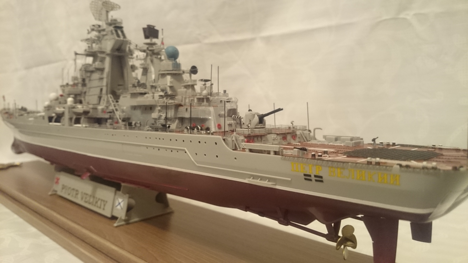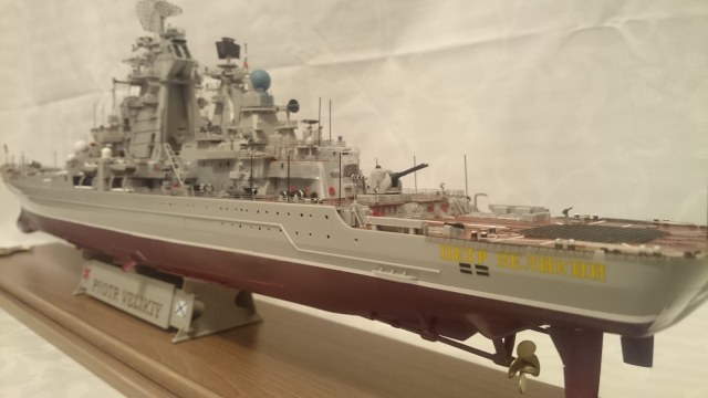 Не могу понять что это за модель, если Пётр от Звезды, как указано в фильтрах, то он у них в 700-м масштабе и без нижней части корпуса. Если все же масштаб 350,опять же как указано в фильтрах, то это не Звезда, а Trumpeter.