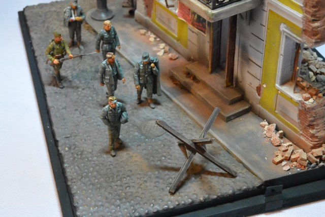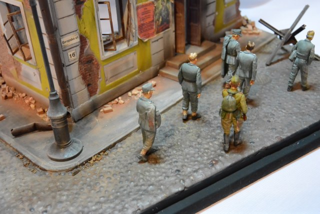 Диорама "Пленные" изготовлена из головы, замысел очень прост.Здание и солдаты MiniArt, кирпичи из глины, доски, щепки и дополнительные элементы строения из пластика пвх, брусчатка-чечевица. Окрашено темперой и TAMIYA.