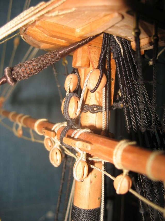 Кругляк на рангоут неплохой, но он в наборе подается в упрощенном виде, и на рангоут по анатомии не хватит,- остался в коробке, делал из груши.