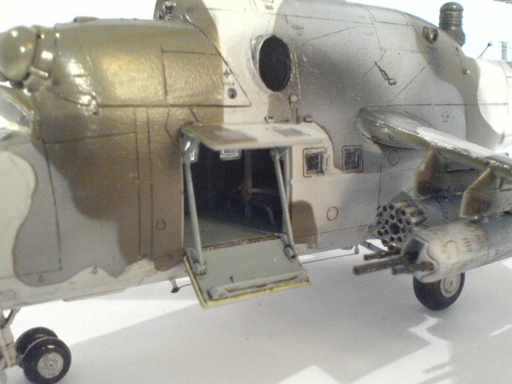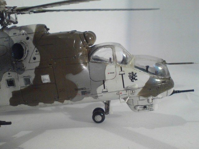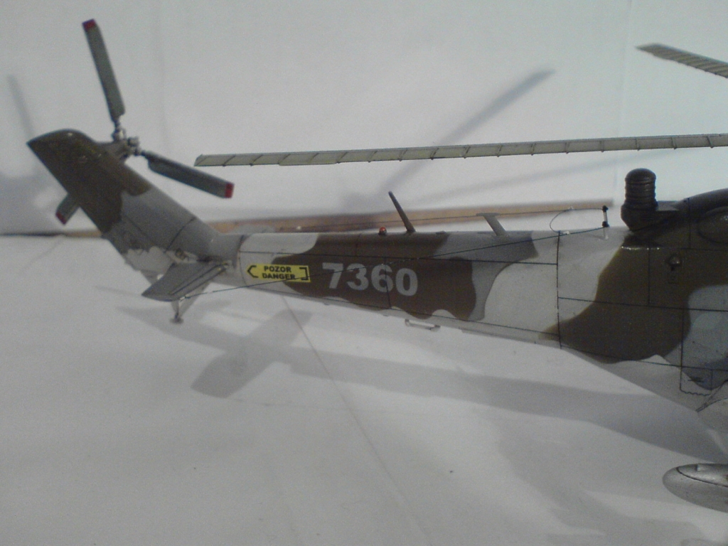 Конкретно с этим вертолетом (Ми-24) осторожнее. У него изгиб почти не ощущается из-за увеличенной ширины и укорачивания лопастей. Она не провисает, а как бы выглядит надломленной в месте крепления. У меня тоже этот момент не совсем получился в 35-ом масштабе.
