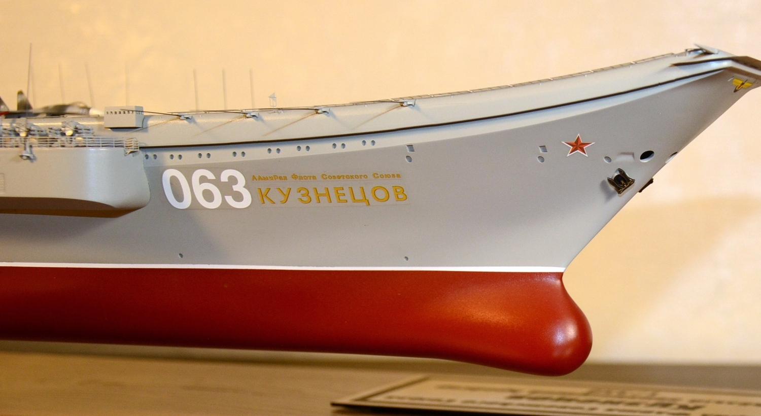 декали "063" и "...Кузнецов" надо было разнести дальше друг от друга,так же "звезда" в носовой части должна быть над якорем.