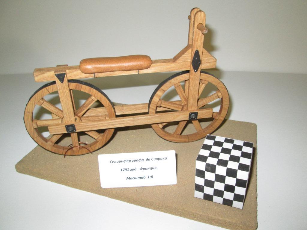 Полностью игнорируя вопросы гуляющих, граф де Сиврак потребовал очистить ему центральную аллею. Затем он оседлал свое загадочное сооружение, состоявшее из деревянной балки с упорами для рук, прикрепленной к колесам посредством двух деревянных же вилок, и, поочередно отталкиваясь ногами, с завидной резвостью промчался по парку Пале-Рояль ! Рукоплескания и радостные крики сопровождали молодого аристократа на всем пути. Многие дамы просили выдвинуть их стулья в первый ряд, дабы не пропустить волнующий момент, когда наездник пронесется мимо, пыля атласными туфлями. Граф де Сиврак демонстрировал публике изобретенную им игрушку для взрослых, которую называли велосифером или селерифером в зависимости от того, предпочитали ли слово «скорость» на латыни «velox» или на французском языке «celerite». Изобретение графа вскоре нашло многих приверженцев.
