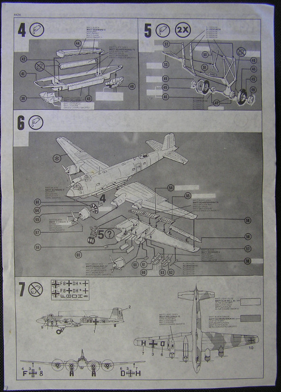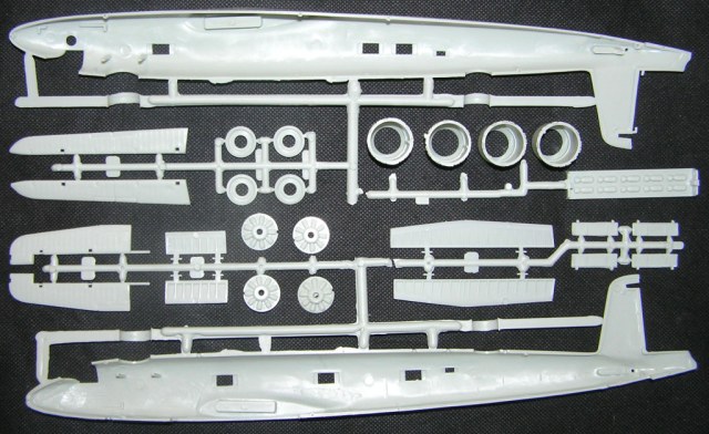 О модели: Представленная модель разработана в далеких 60-х - 70-х прошлого века (по имеющейся в сети информации - или в 1965 году или все же в 1971 году (https://www.scalemates.com/kits/168732-revell-lodela-rh-4424-focke-wulf-fw-200c-condor)). Имеет внешнюю расшивку и “огуречную клепку”. Набор состоит из 6 литников с деталями светло серого пластика и одной рамки прозрачного пластика. Литье под высоким давлением. Пластик очень хрупкий. Присутствуют утяжины, облой, жуткие следы токлателей (иногда в самых неожиданных местах), царапины по внутренним поверхностям (похоже к 80-м форму изрядно ушатали). Недоливов не заметил. По нынешним временам 120 деталей, маловато для модели такого размера (производителем заявлено: 33,2 х 45,4 см), т.е. деталировка слабая, где то условная. Для своих преклонных лет и внушительных габаритов, модель показывает довольно таки пристойную стыкуемость деталей.
